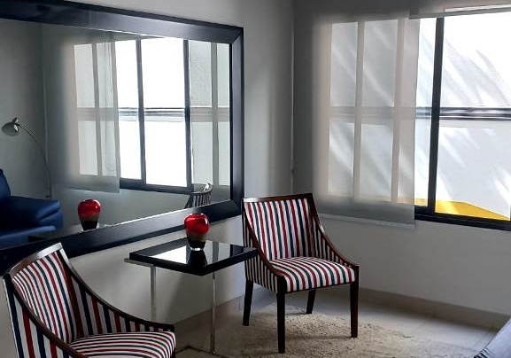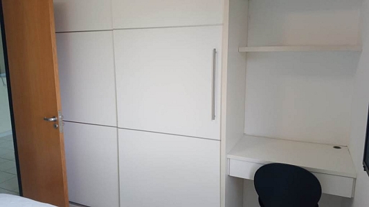 Apartamento MOBILIADO de 47m², com 1 dormitório com armário embutido, sala para 2 ambientes com sacada, cozinha americana planejada, área de serviço e garagem grande.