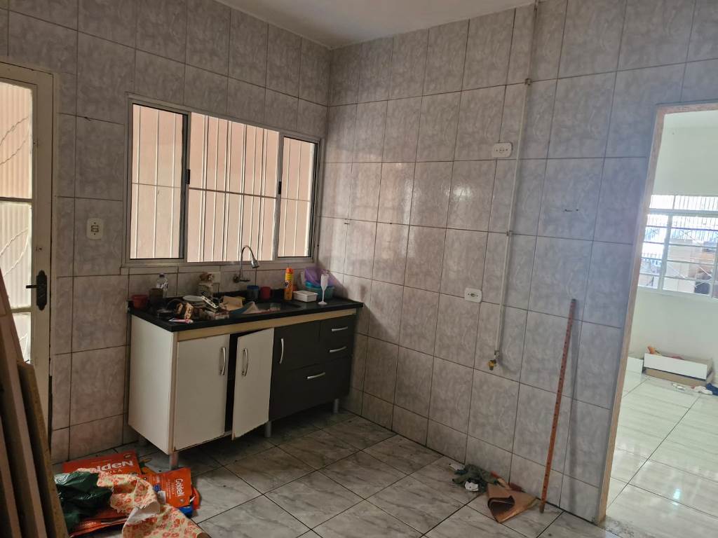 Sobrado num terreno de 150m², área construída de 150m², com 2 dormitórios, sala para 2 ambientes, cozinha, banheiro social e garagem para carros.