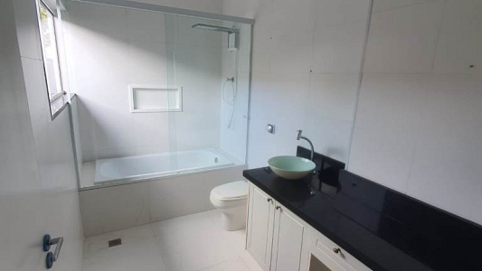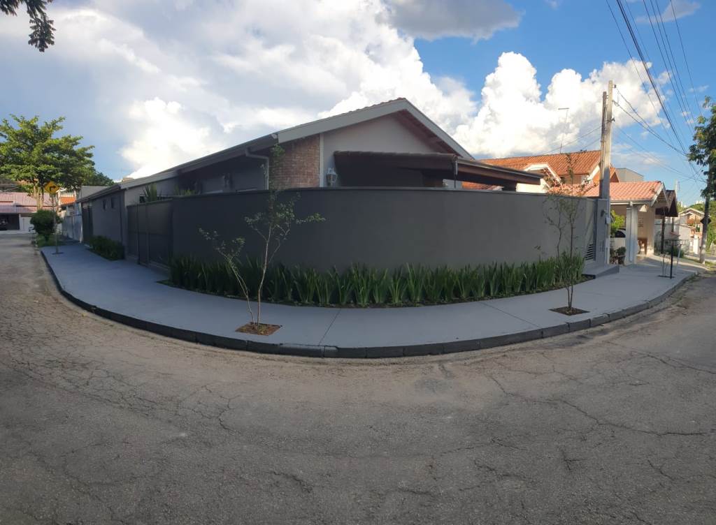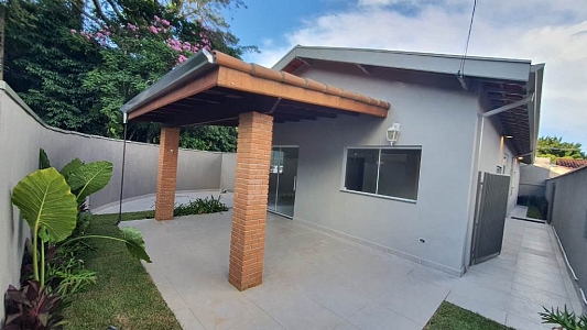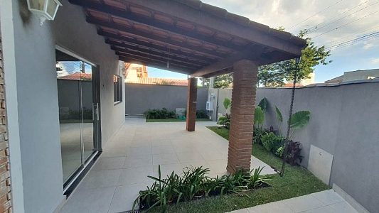 Casa térrea num terreno de 250m², área construída de 225m², com 3 dormitórios, sendo 2 suítes, sala para 2 ambientes, 3 banheiros, área de serviço e garagem para 2 carros.