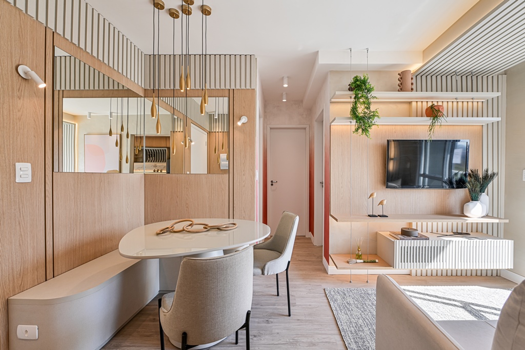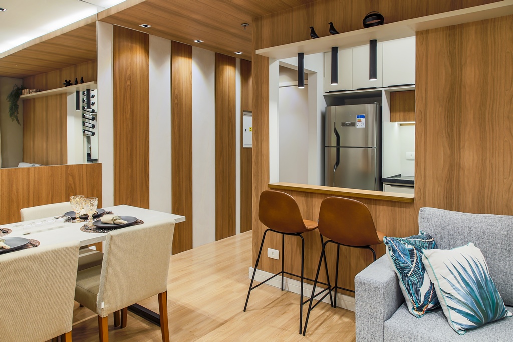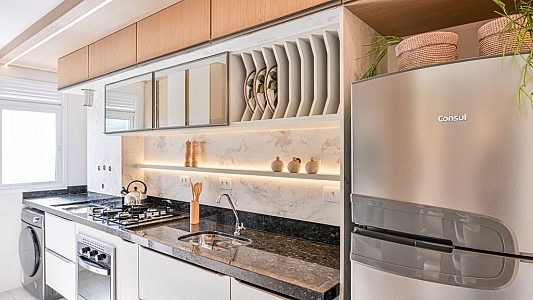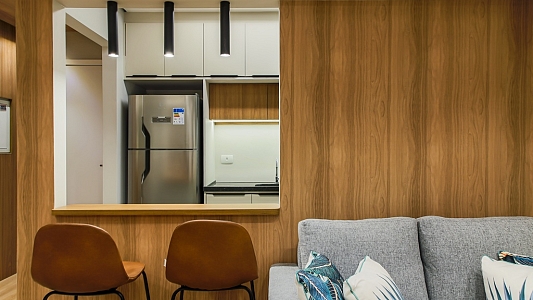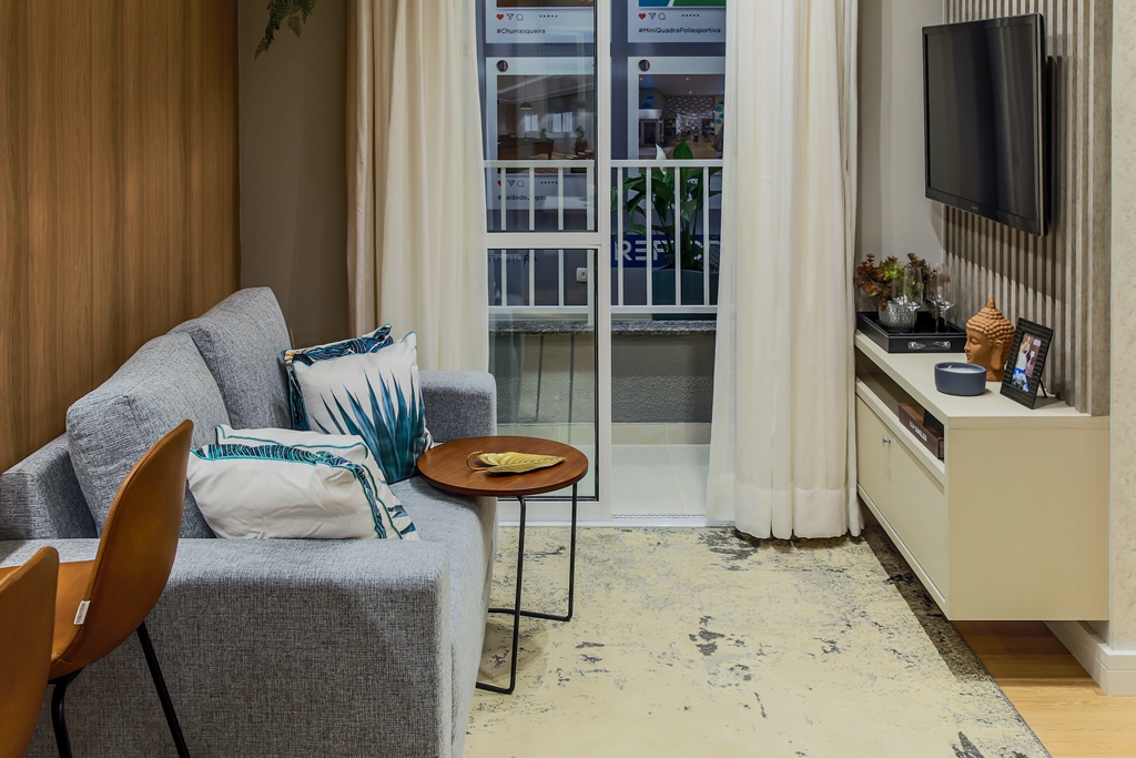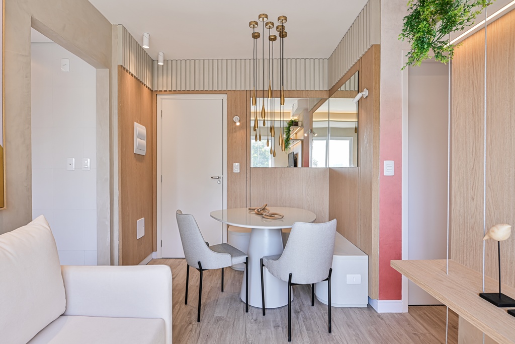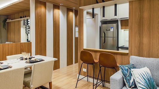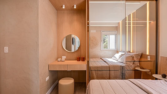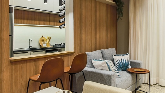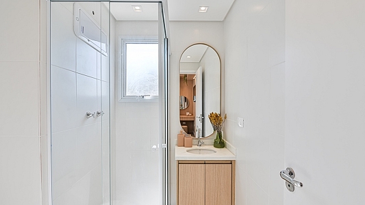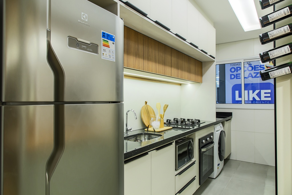Apartamentos de 51,03m², com 2 dormitórios sendo 1 suíte, sala para 2 ambientes com sacada, cozinha, área de serviço, 1 vaga de garagem e hobby box no subsolo.
