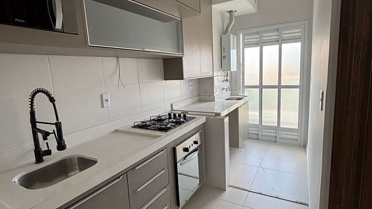 Este apartamento novo de 70m² é a oportunidade perfeita para quem busca qualidade de vida. Ele oferece 2 dormitórios, sendo 1 suíte com closet, todos com armários embutidos para otimizar o espaço. A sala para 2 ambientes com varanda gourmet é ideal para receber amigos e a cozinha planejada facilita o dia a dia. Você ainda conta com uma área de serviço e 1 vaga na garagem.