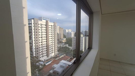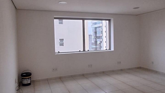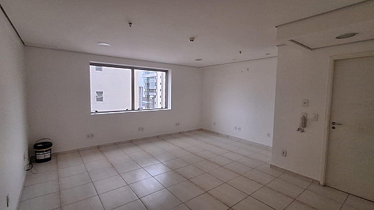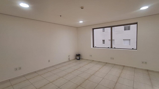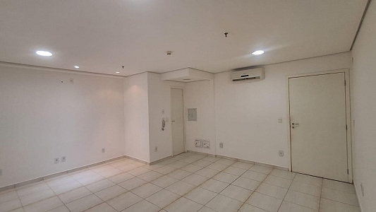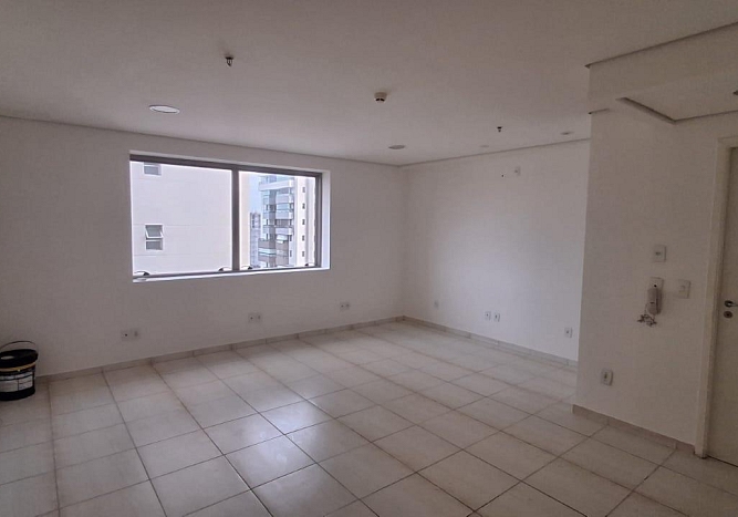 Sala comercial de 28m², em andar alto, com bela vista, equipada com ar-condicionado, banheiro privativo e 1 vaga de garagem.