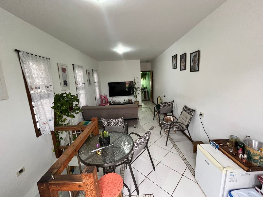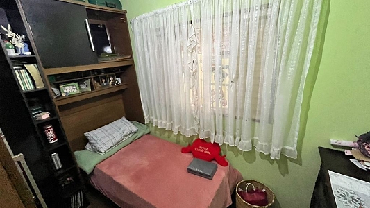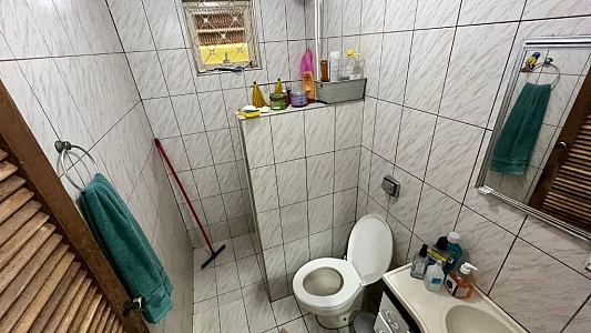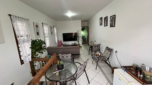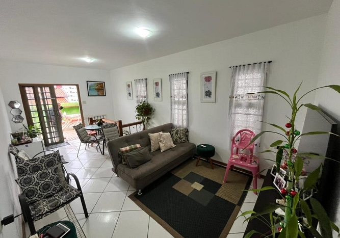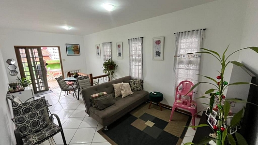 - No pavimento inferior: 3 dormitórios, sendo 1 suíte, sala de TV, banheiro social, cozinha e área de serviço.