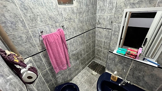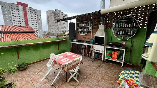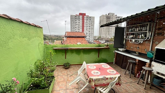 - No pavimento térreo: sala ampla para 2 ambientes, banheiro social, terraço com churrasqueira e garagem para até 3 carros.