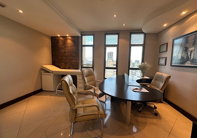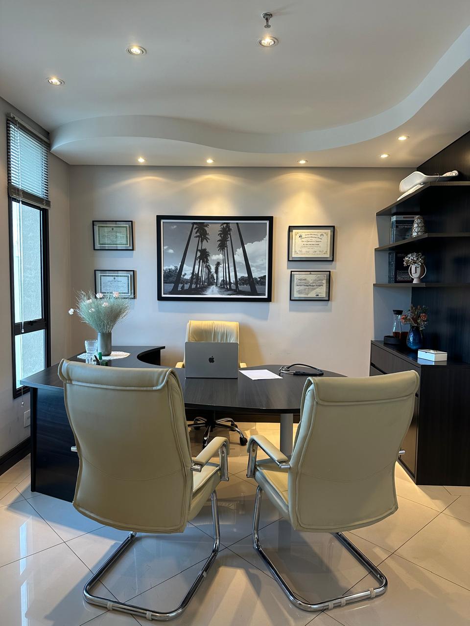Excelente oportunidade! Sala comercial de 53m² totalmente mobiliada e pronta para uso. Localizada em andar alto, oferece um ambiente sofisticado com projeto de iluminação, teto rebaixado, ar condicionado e móveis planejados de alta qualidade.