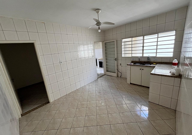 Com 3 dormitórios, sala para 2 ambientes, ampla cozinha com azulejos até o teto, banheiro social, área de serviço e garagem para 2 carros.