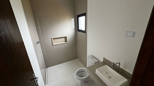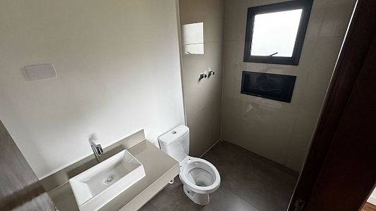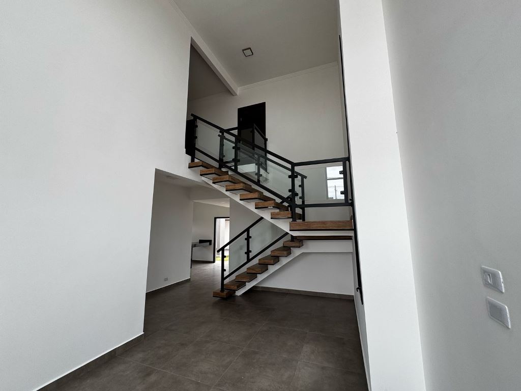 Este sobrado, num terreno de 252m², novo combina design moderno com funcionalidade. Com um imponente pé-direito duplo na sala, o imóvel oferece ambientes amplos e iluminados em seus 197m² de área construída.