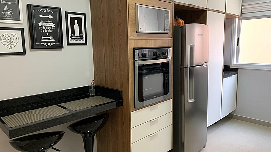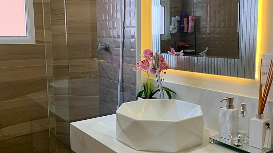 Imagine chegar em casa e controlar a iluminação da sua sala pelo celular. Receber amigos em uma varanda integrada com cortina de vidro e preparar um jantar em uma cozinha planejada com o elegante mármore São Gabriel.