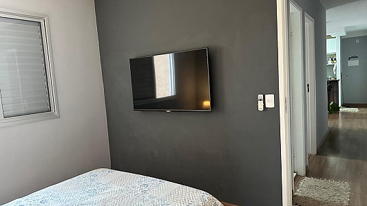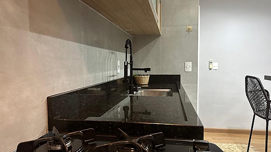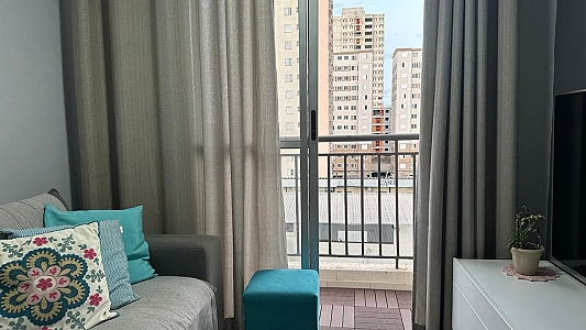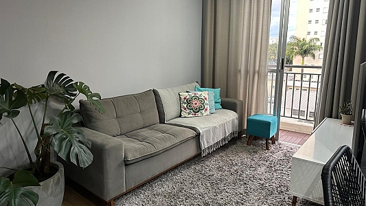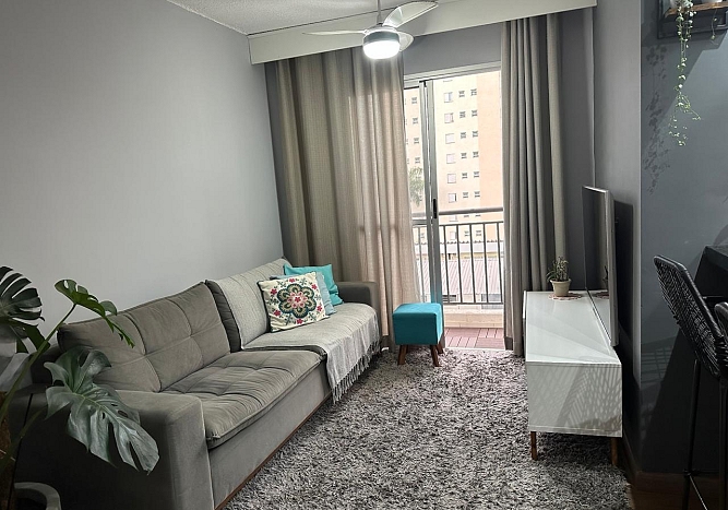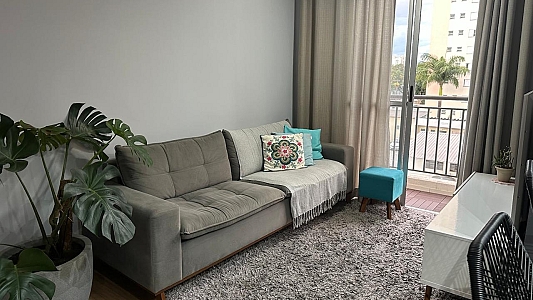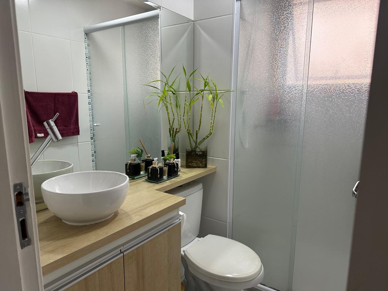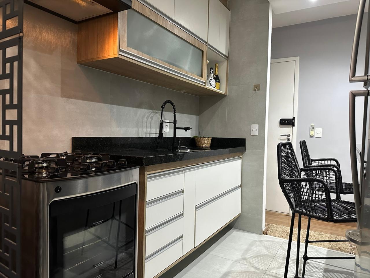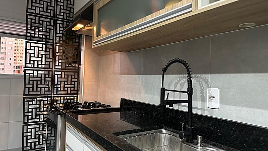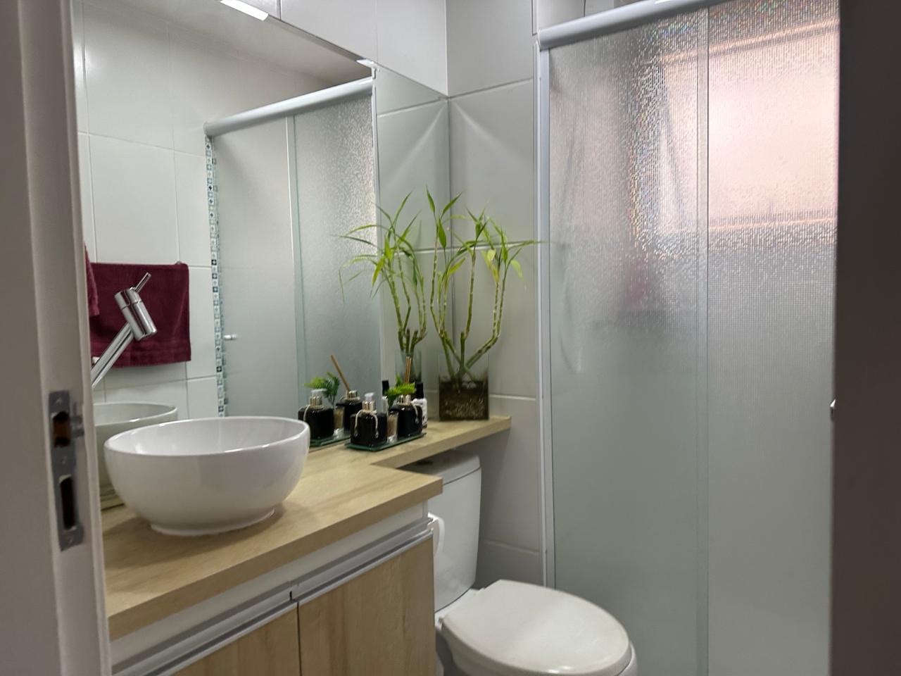 Dispõe de 2 dormitórios repletos de armários planejados, sala ampliada para dois ambientes com sacada e uma moderna cozinha americana planejada. O banheiro conta com box de vidro e gabinete, complementado por uma área de serviço funcional e 1 vaga de garagem coberta.