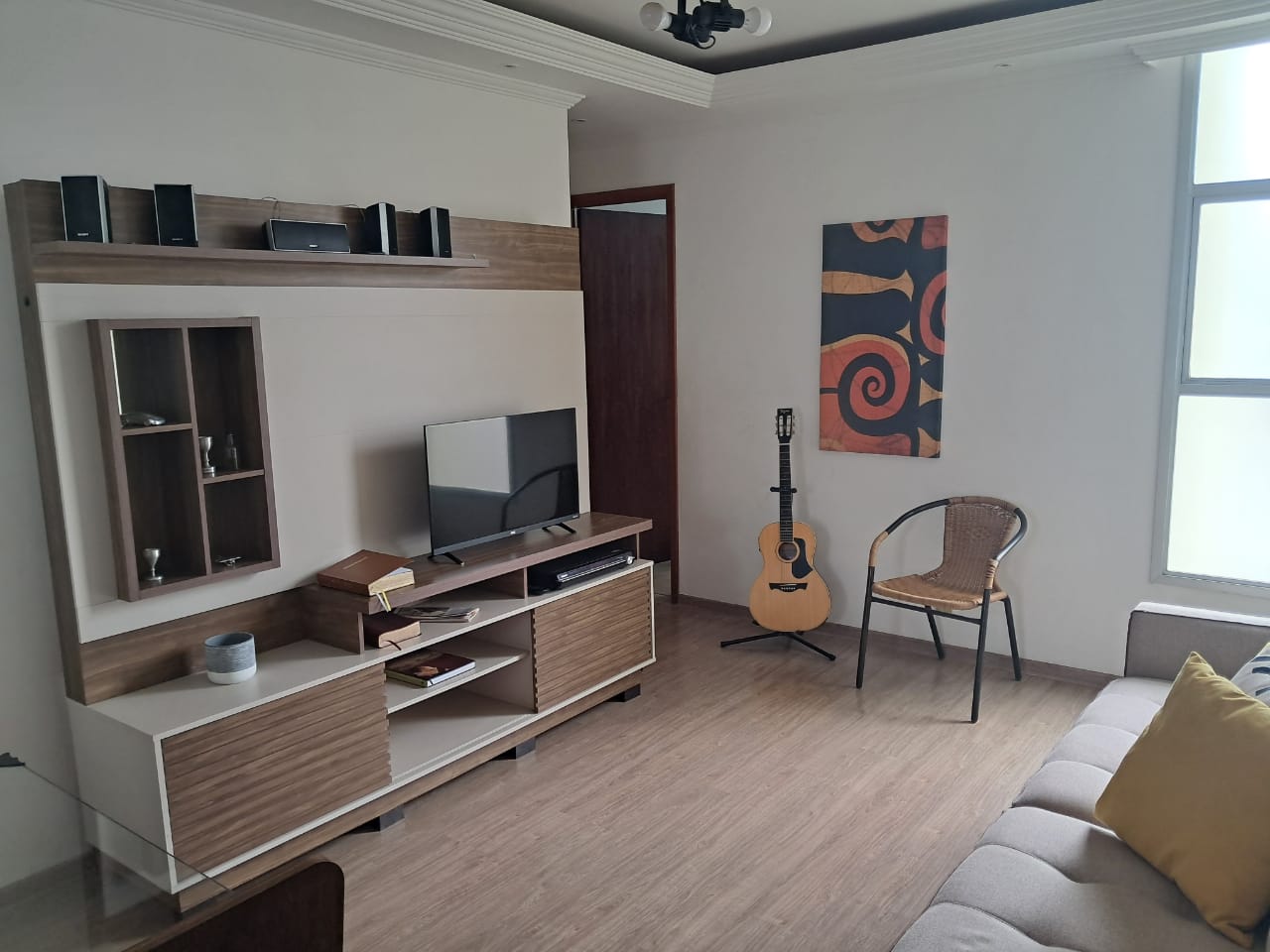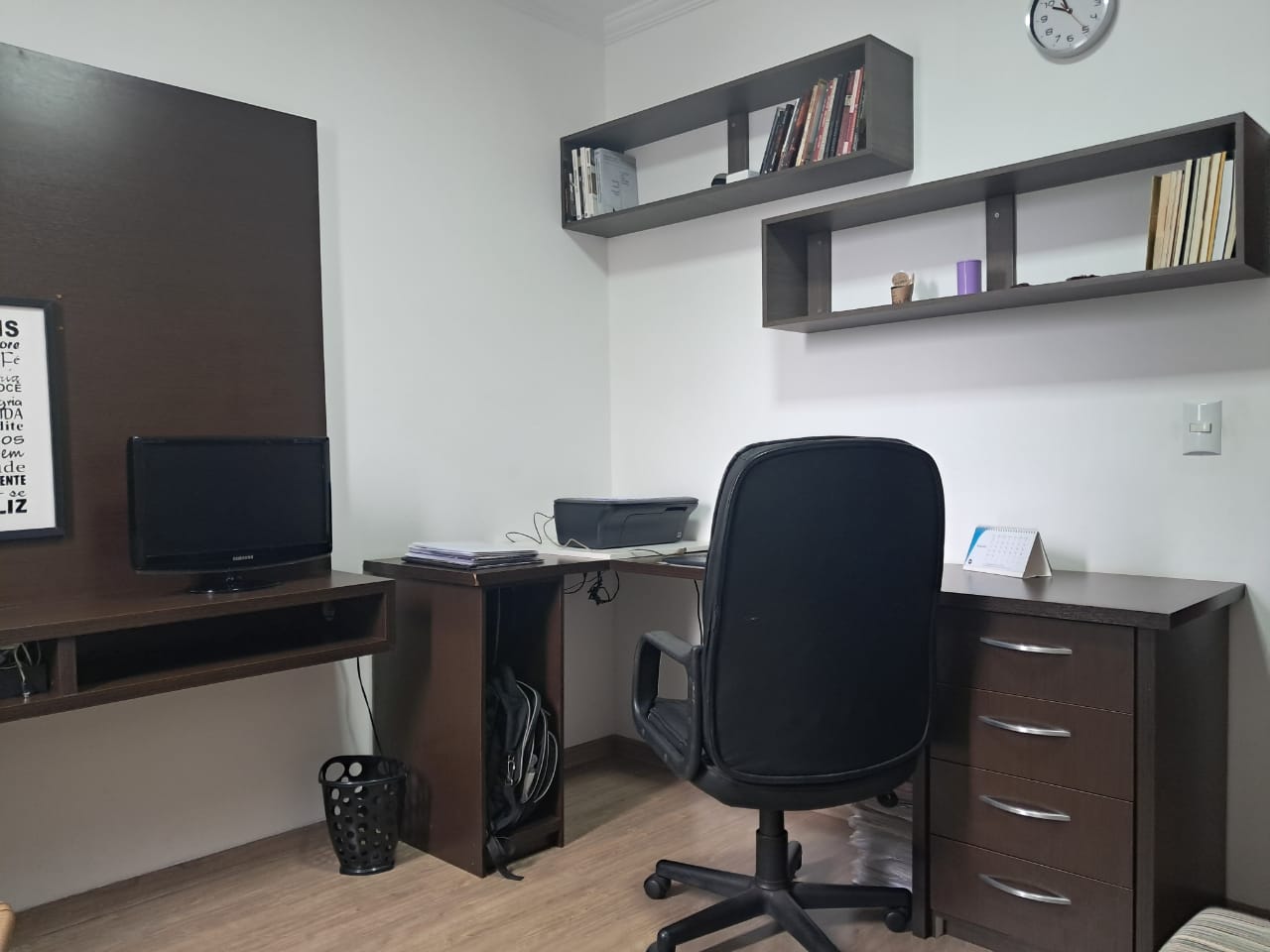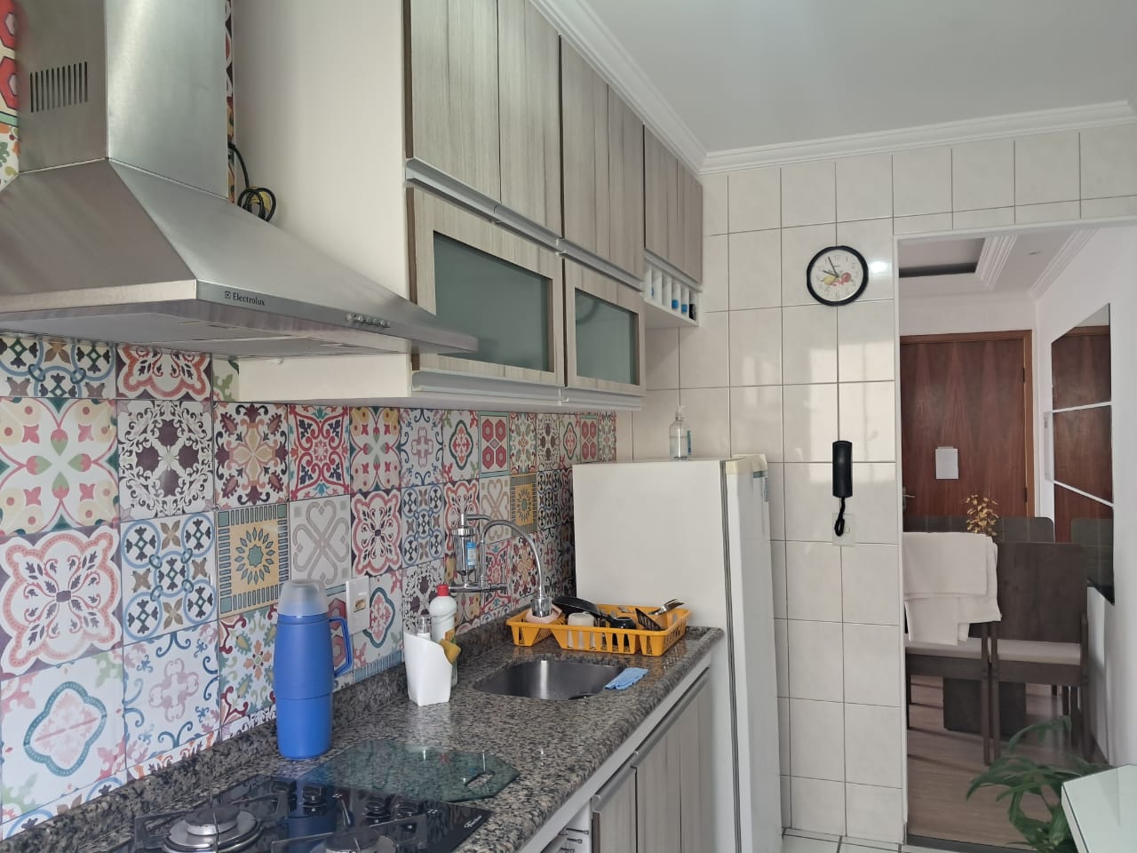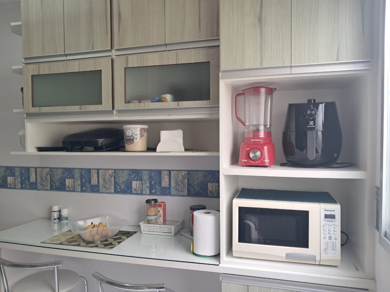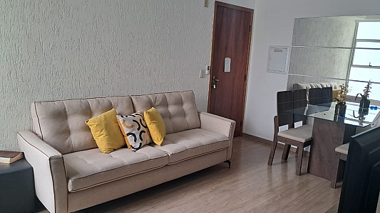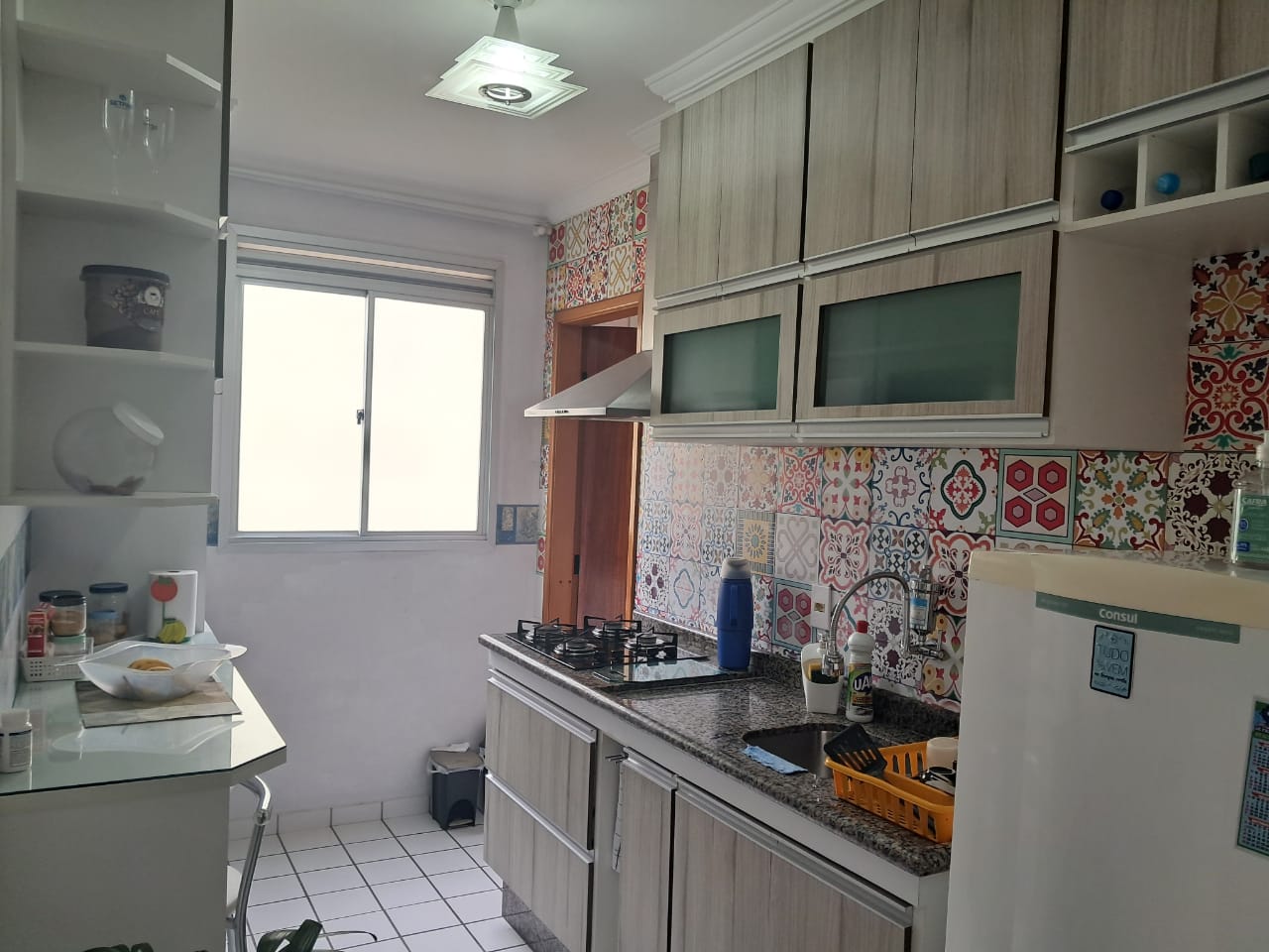 Destaques internos: 2 dormitórios repletos de armários planejados; sala ampla para dois ambientes com ventilador de teto; cozinha funcional com bancada, cooktop e coifa; área de serviço organizada e banheiro com box de vidro.