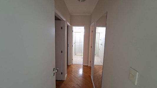 A unidade ainda oferece cozinha e área de serviço planejadas, banheiro social, banheiro de serviço e 2 vagas de garagem paralelas no 2º subsolo.