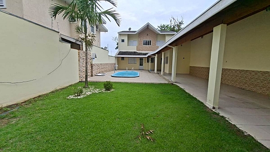 Este sobrado exclusivo destaca-se pelo seu amplo terreno de 250m², posicionado estrategicamente para oferecer um quintal generoso com piscina logo na entrada.