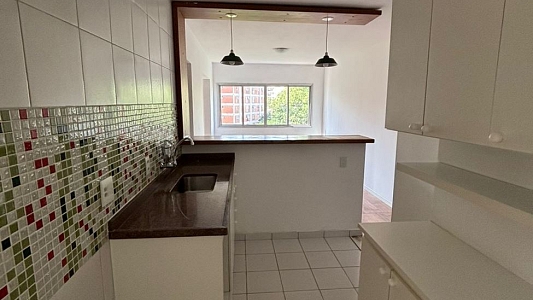 Comodidades: Cozinha funcional com armários, dependência completa de empregada (quarto e banheiro), lavanderia ventilada e 1 vaga de garagem.
