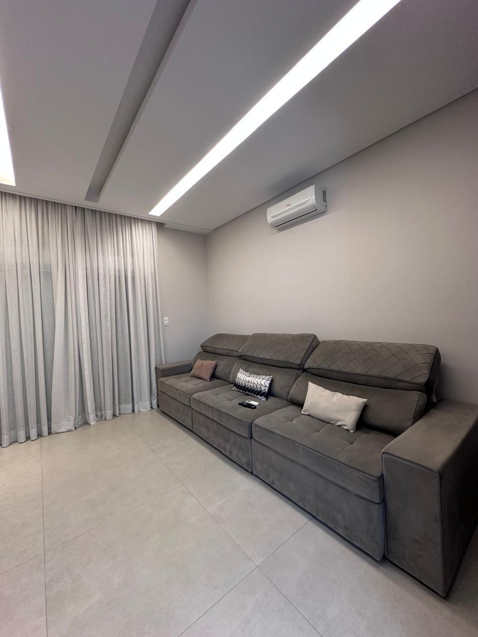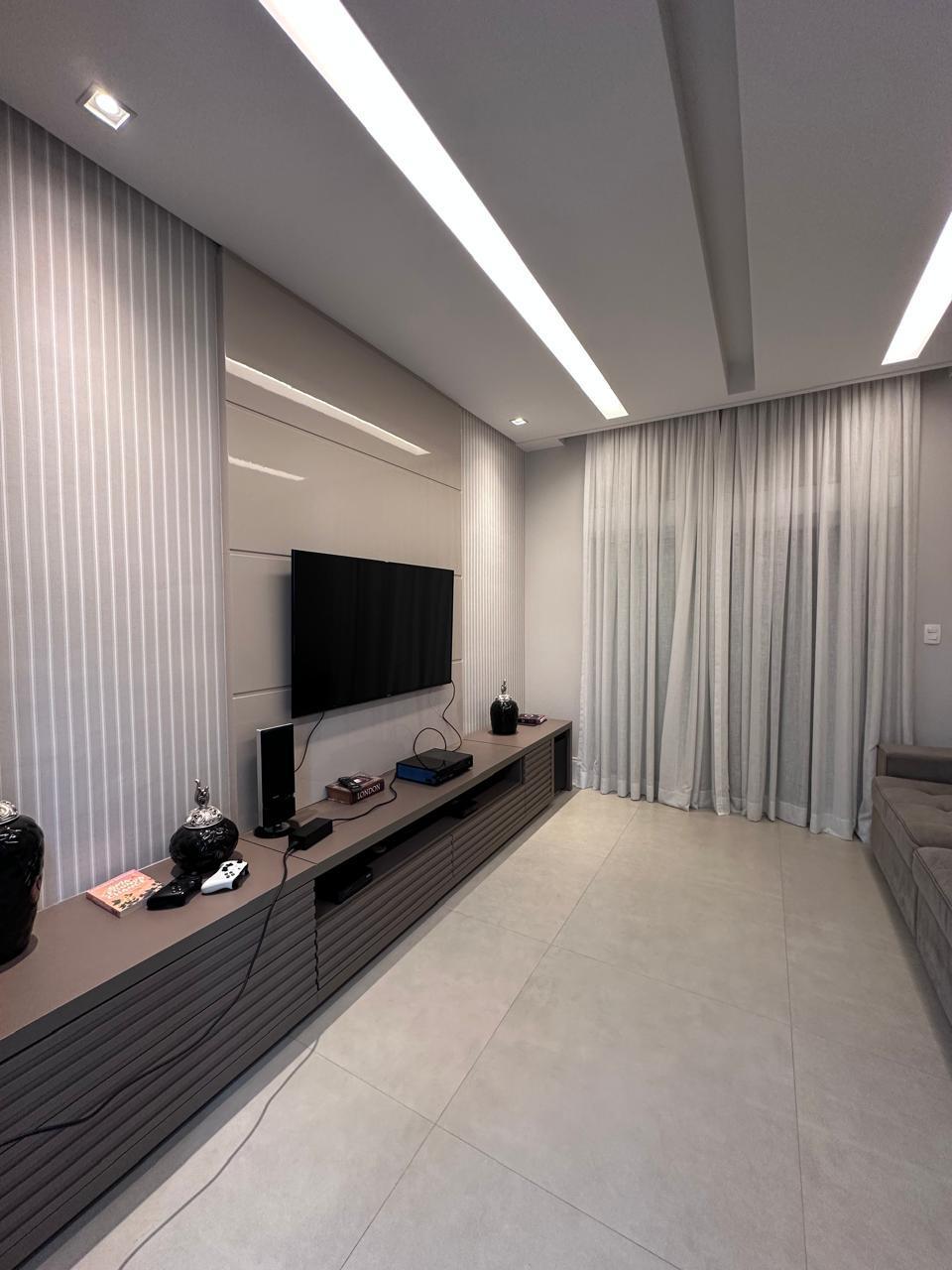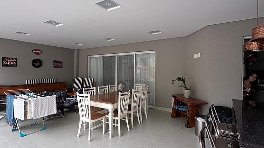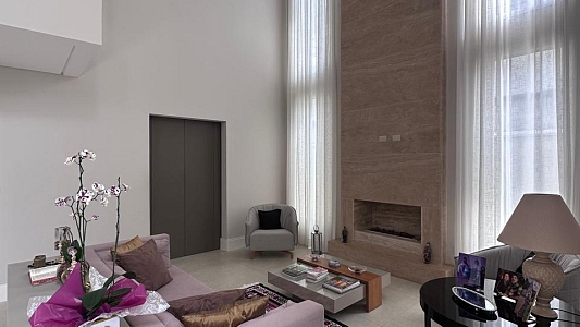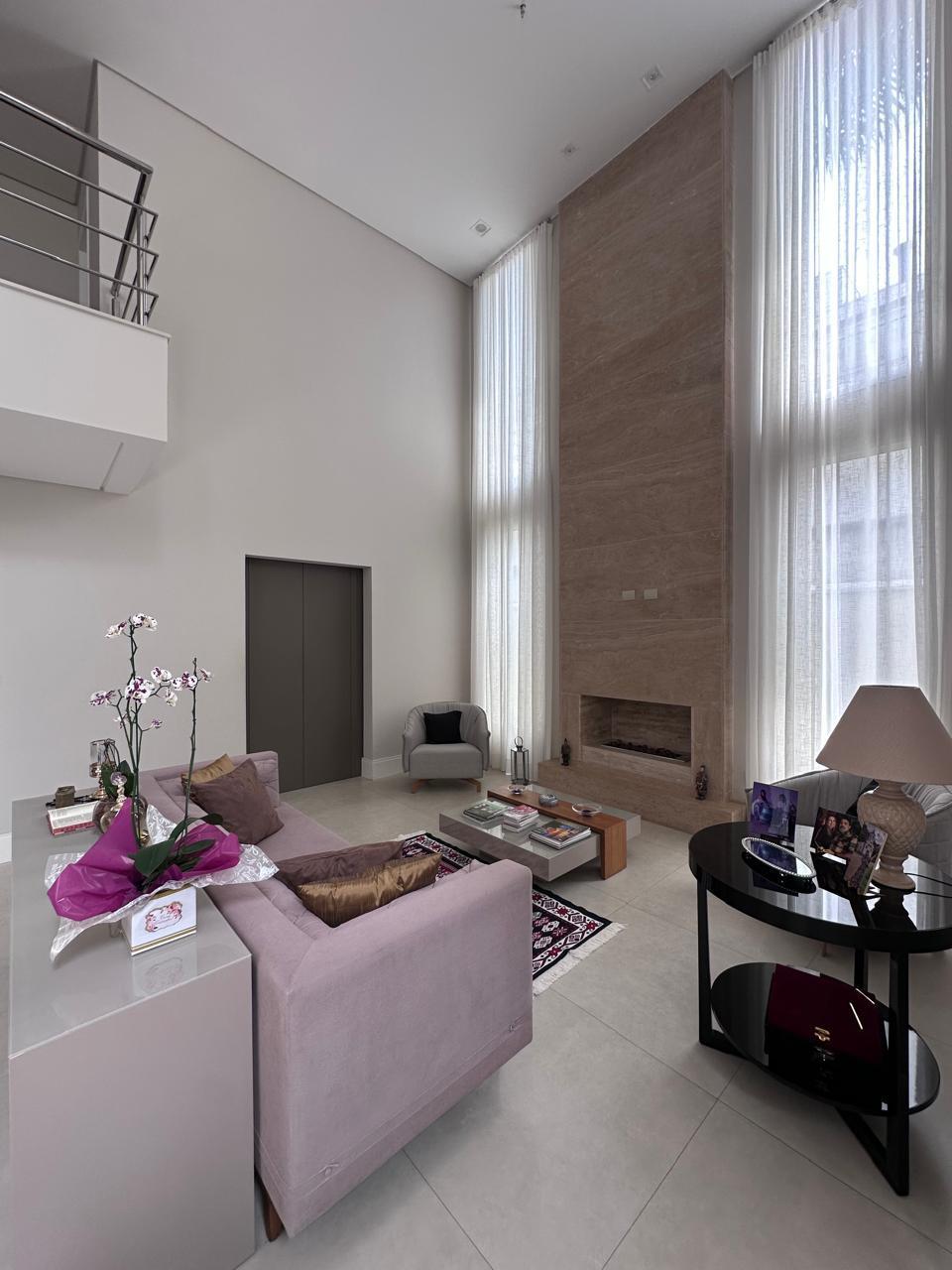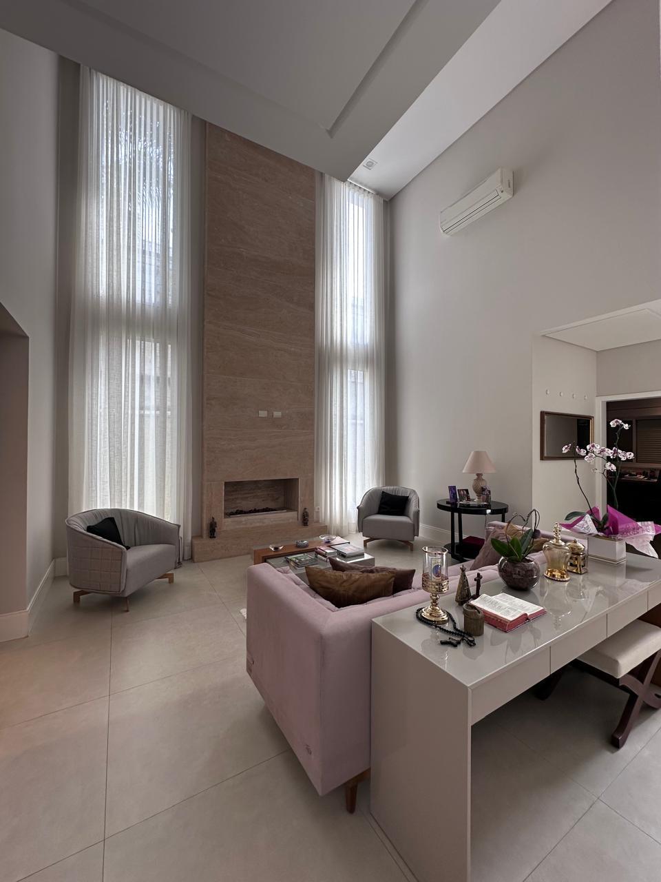 Espaços de Convívio: Ampla sala de estar com 3 ambientes e lareira, sala de TV climatizada e um lavabo social.