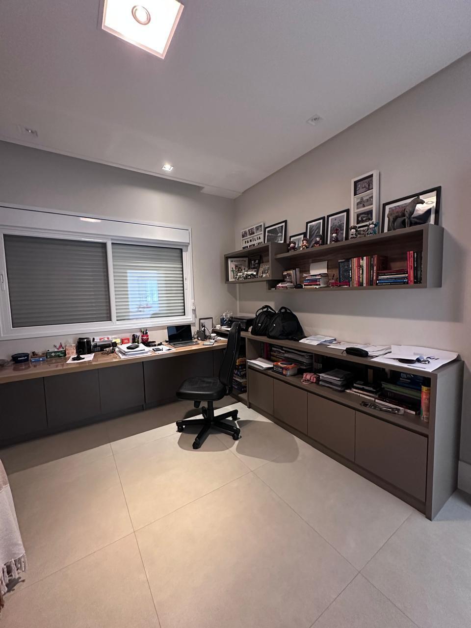Praticidade: Escritório que pode servir como suíte de hóspedes no térreo.