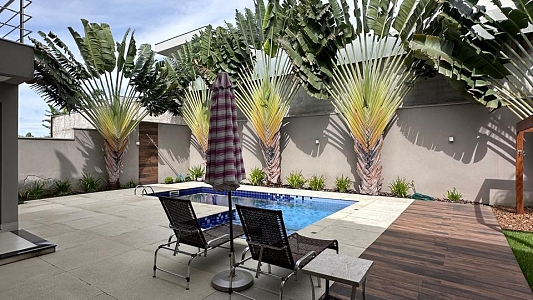Área Externa: Piscina aquecida para desfrutar o ano todo, espaço gourmet com churrasqueira e garagem coberta para 2 veículos.