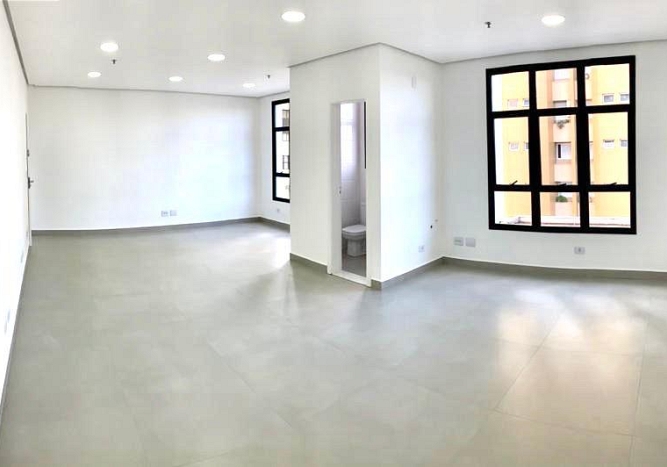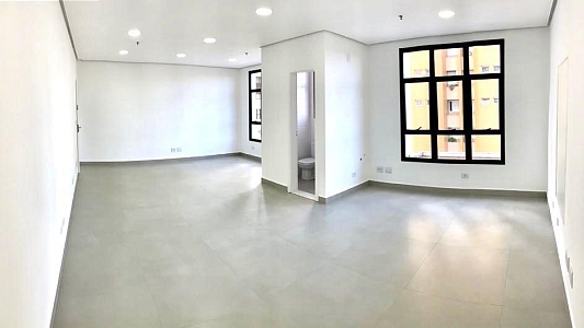 Esta sala, totalmente reformada, destaca-se pela excelente iluminação natural com o sol da manhã. O espaço conta com acabamento impecável, banheiro privativo, infraestrutura elétrica otimizada com diversos pontos de energia e previsão para pontos de água adicionais. Inclui ar-condicionado instalado e 1 vaga de garagem coberta no subsolo.