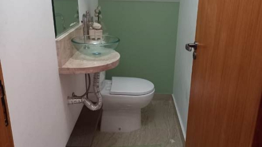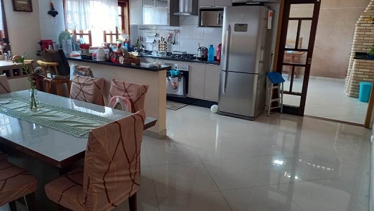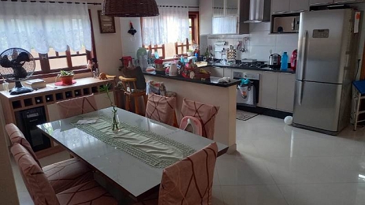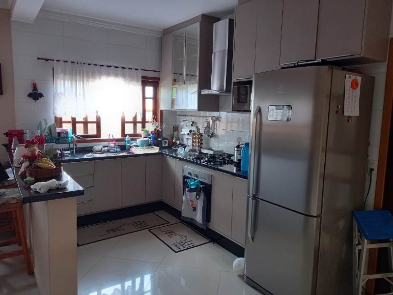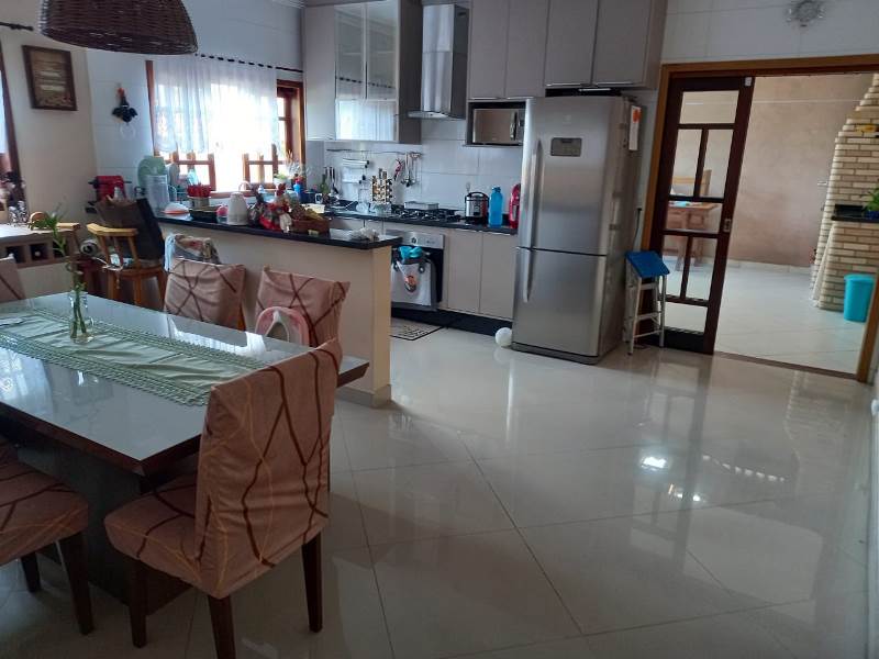 Sobrado com 150m² de área construída, num terreno de 130m², com 3 dormitórios, sendo 1 suíte, sala para 2 ambientes, copa e cozinha planejada, lavabo, banheiro social, área de serviços, churrasqueira e garagem coberta,