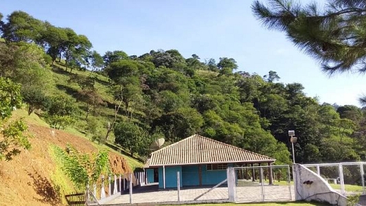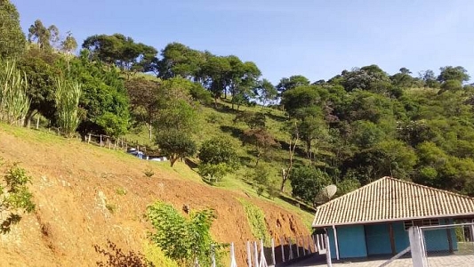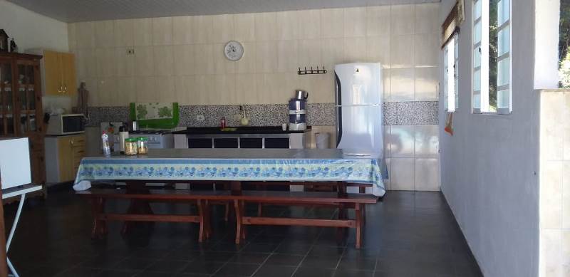 Sítio de 2 alqueires, com minas de água, casa com 3 dormitórios, sala para 2 ambientes, 2 cozinhas, 3 banheiros, piscina, churrasqueira e fogão à lenha.