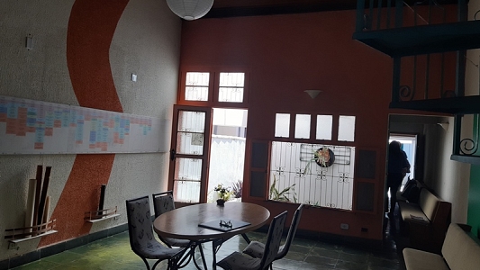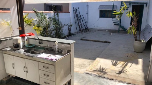 Imóvel comercial num terreno de 165 (5 x 33), com área construída de 156m², com 2 banheiros, salão com mezzanino, copa e edícula assobrada nos fundos.