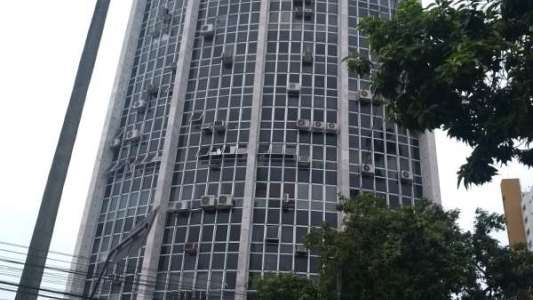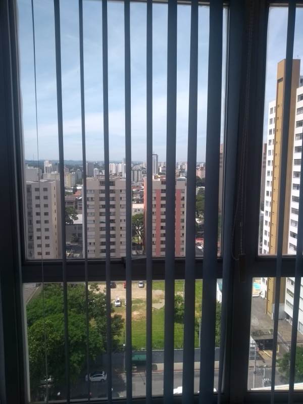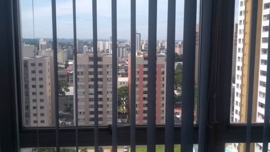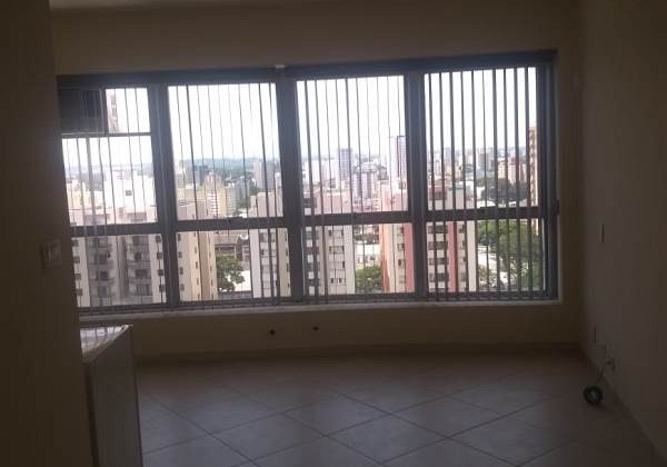 A sala está em perfeito estado de conservação, com piso em porcelanato Eliane, ar condicionado, armário embutido, banheiro e uma vaga de garagem. Possui 32m² internamente e área total de 70m² conforme consta na escritura.