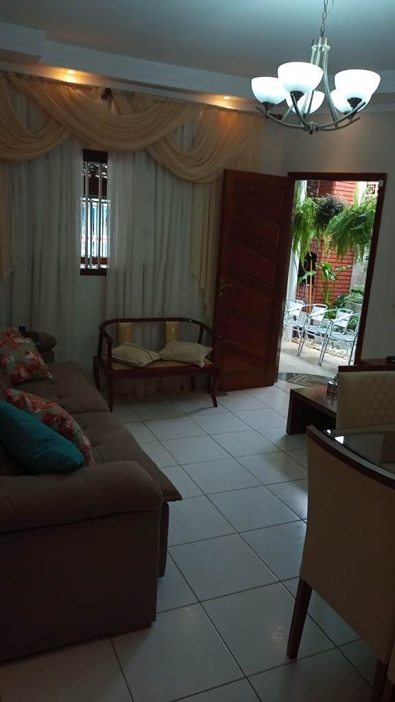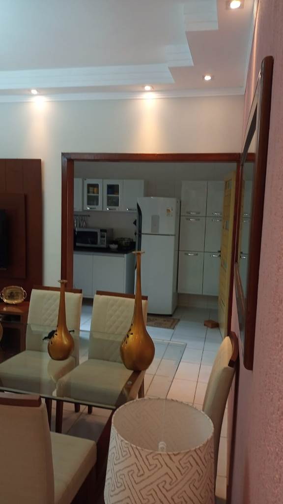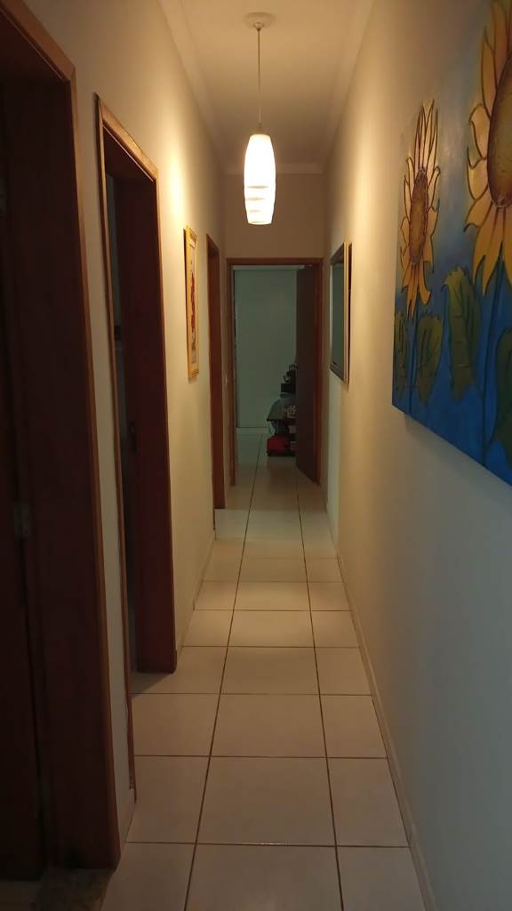 Casa térrea num terreno de 120m², área construída de 97m², com 3 dormitórios, sendo 1 suíte, sala para 2 ambientes, cozinha com armários, banheiro social, jardim de inverno, sancas em todos os cômodos, pé direito alto e garagem fechada para 2 carros.