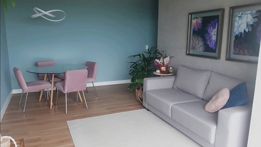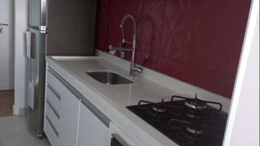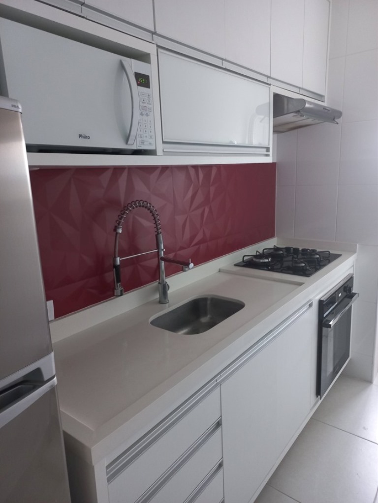 Diferenciais: Redes de proteção em todas as janelas, teto rebaixado: suíte e sala, Iluminação especial, Piso vinílico, Pedra de mármore branca na cozinha, área de serviço e banheiros. Misturador especial na cozinha e torneiras especiais nos banheiros.