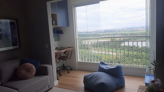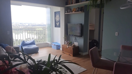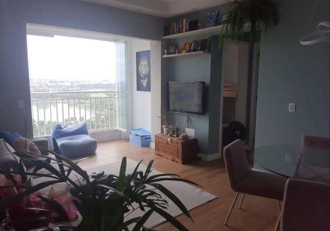 Lindo apartamento com 61,8 m², sendo 2 dormitórios com armários embutidos, sendo 1 suíte, sala para 2 ambientes, sacada com vidros, cozinha planejada, sol da manhã, andar alto, vista livre.