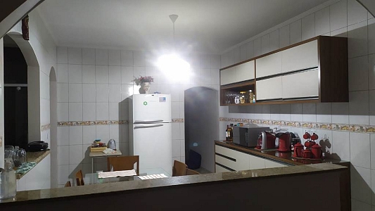Casa térrea num terreno de 150², área construída de 72m², com 3 dormitórios, sala para 2 ambientes cozinha americana, banheiro e garagem fechada para 2 carros.