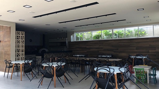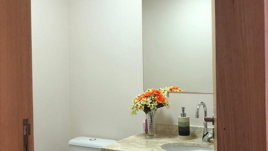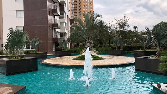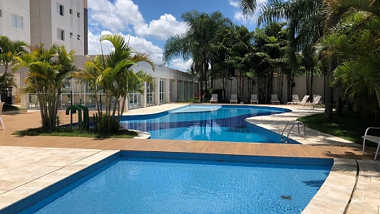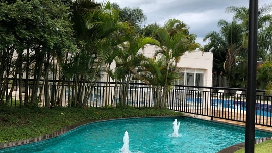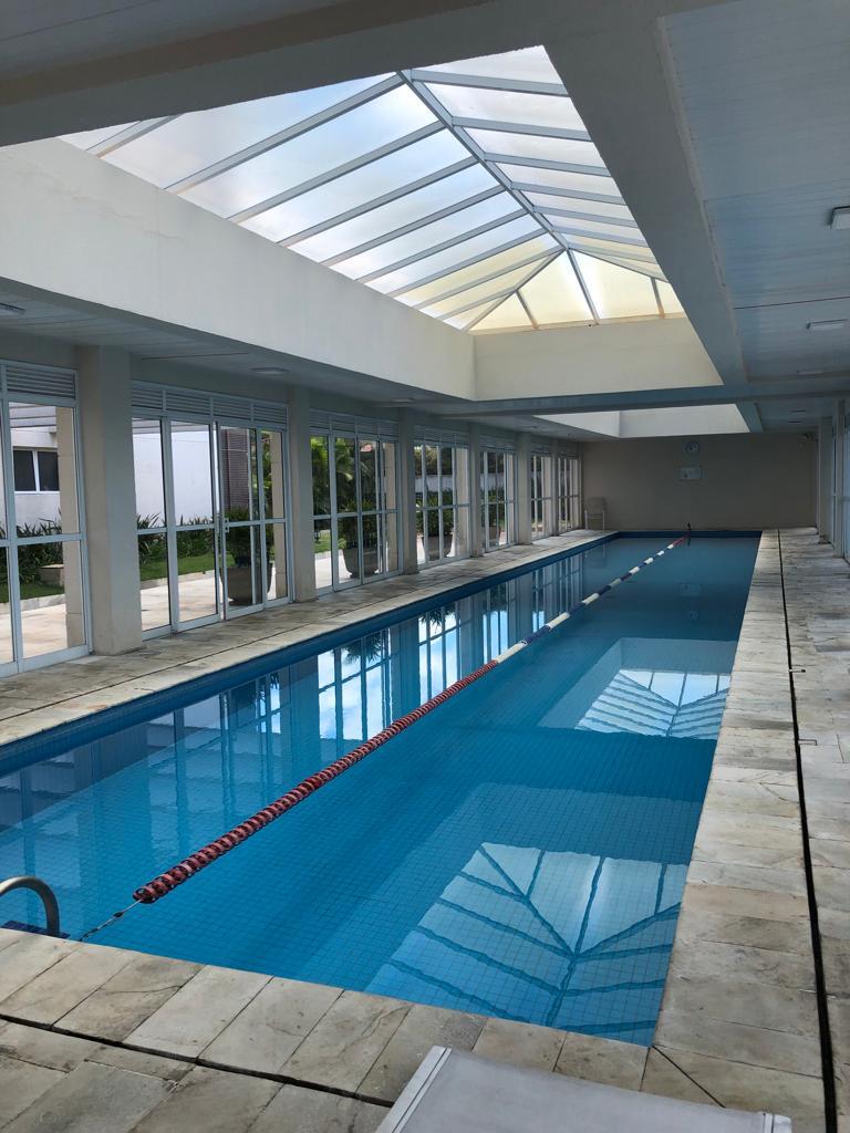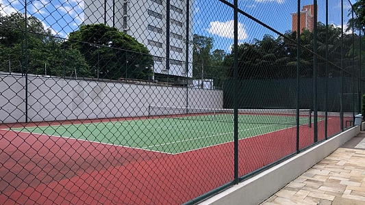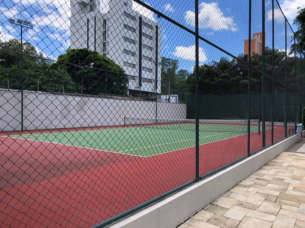 Condomínio com portaria 24 horas, piscinas, inclusive aquecidas, churrasqueira, sala de ginástica, quadra de tênis, salão de festas e salão de jogos.
