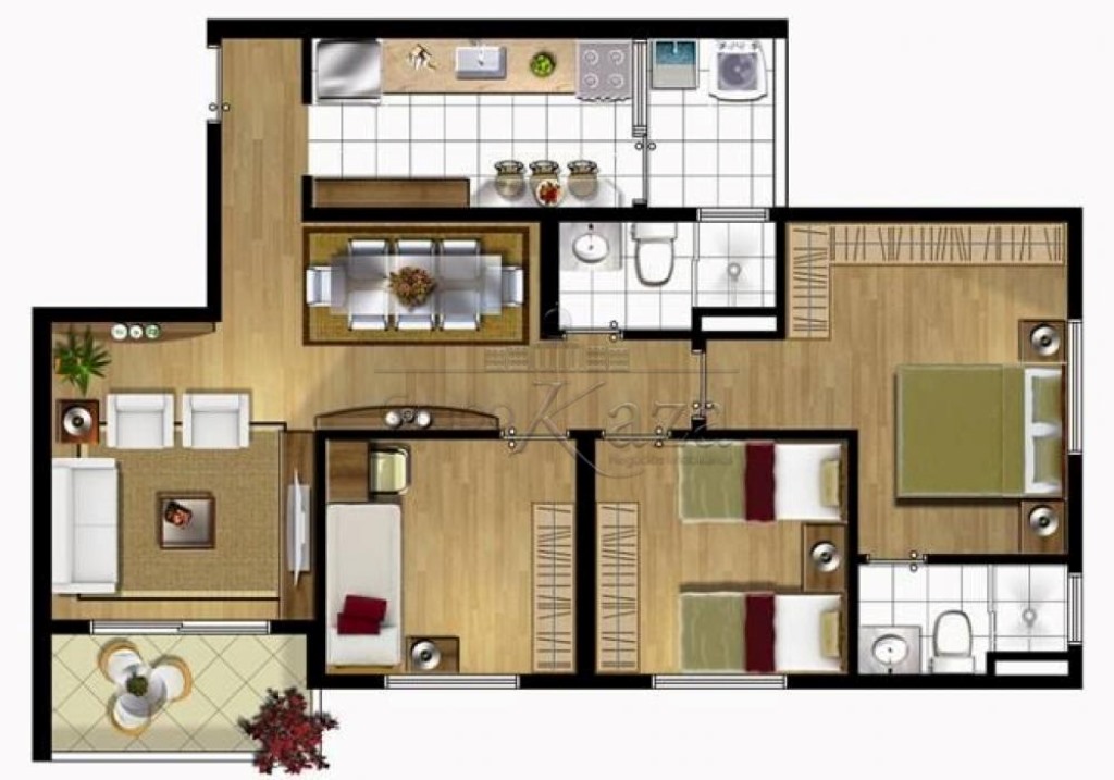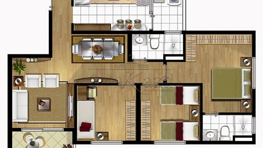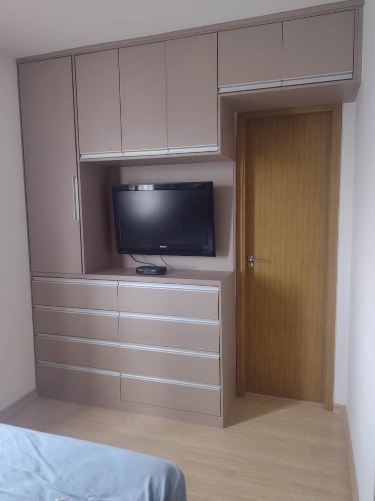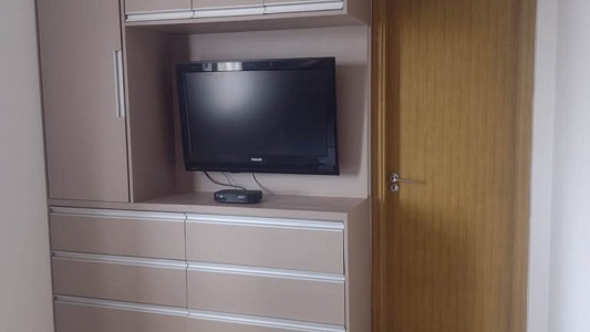 Apartamento de 68m², com 3 dormitórios, sendo 1 suíte, com móveis planejados, sala em L, bem iluminada e arejada; banheiro social com armários; cozinha com armários planejados, área de serviço separada e 2 vagas de garagem no subsolo.