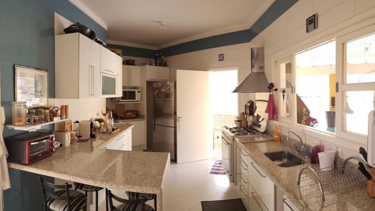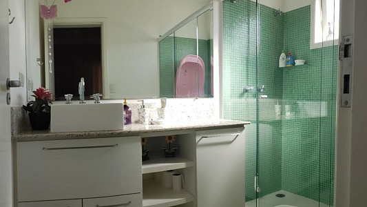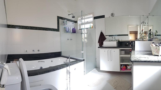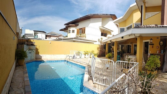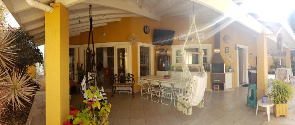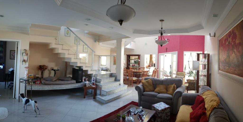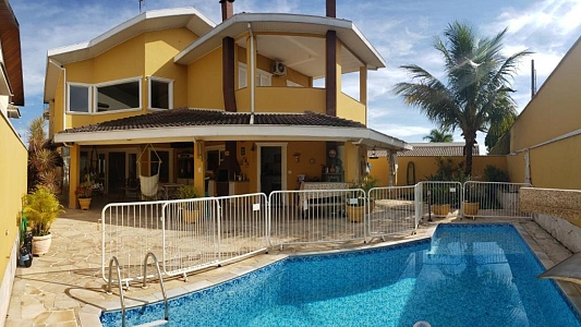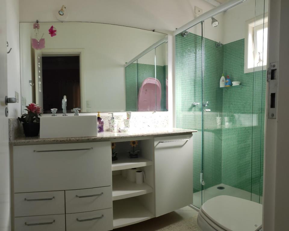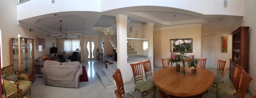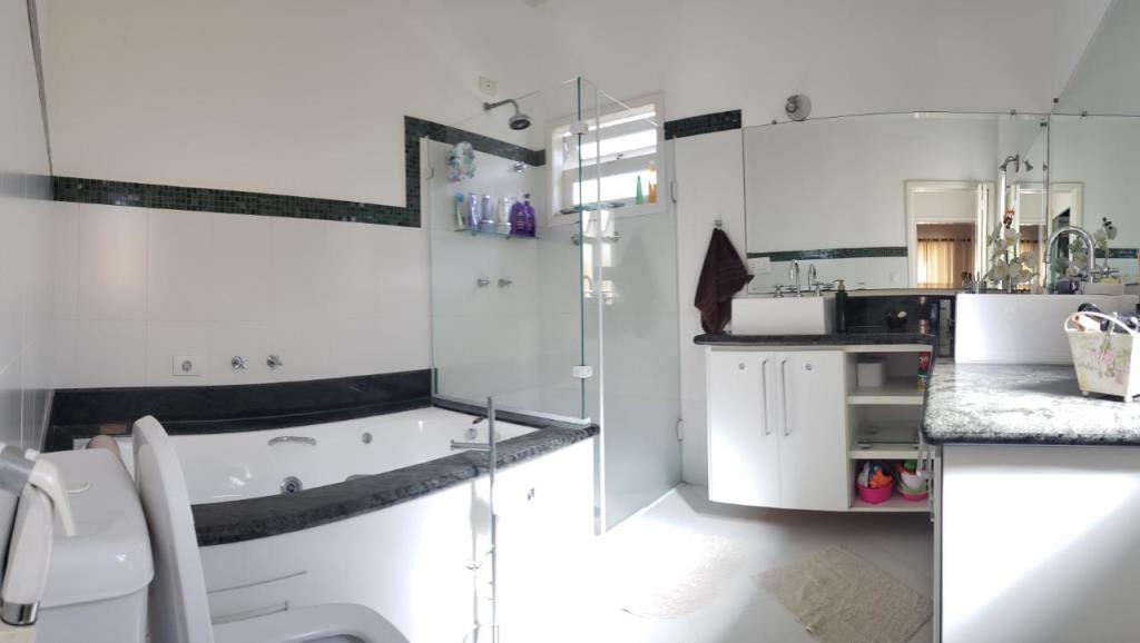 4 dormitórios, sendo 3 suítes, 7 banheiros , piscina com 27mil litros, cozinha planejada, armários embutidos, área de serviço com móveis planejados, churrasqueira com fogão a lenha acoplado, aquecedor solar com boiler de 500 litros, sala para 3 ambientes ((Lareira, estar e jantar) e garagem para 4 carros.