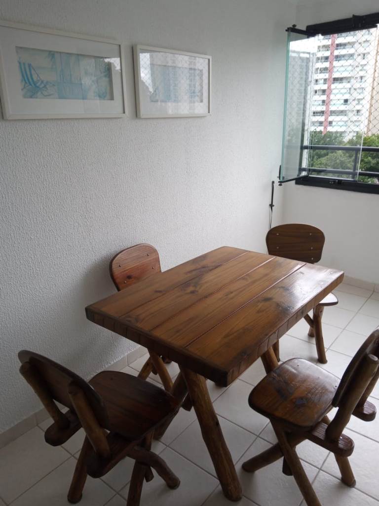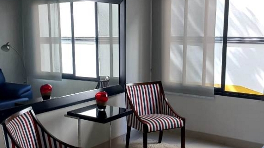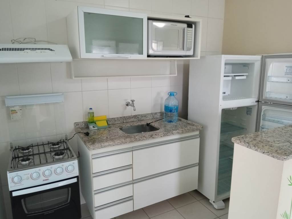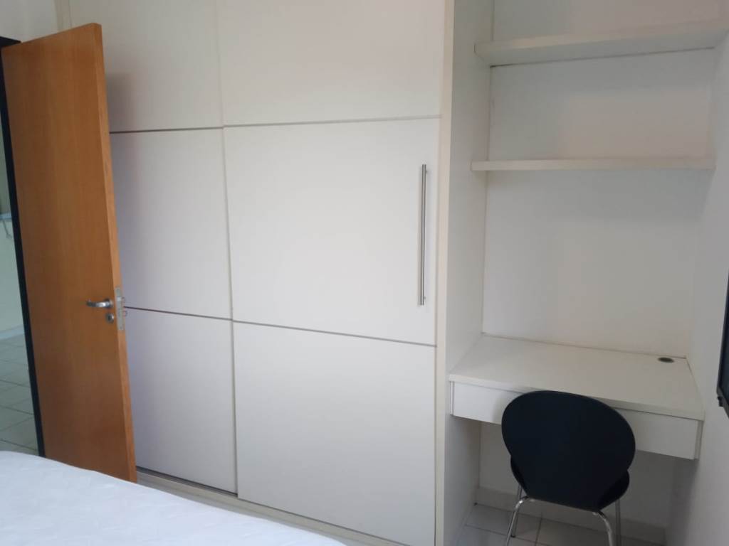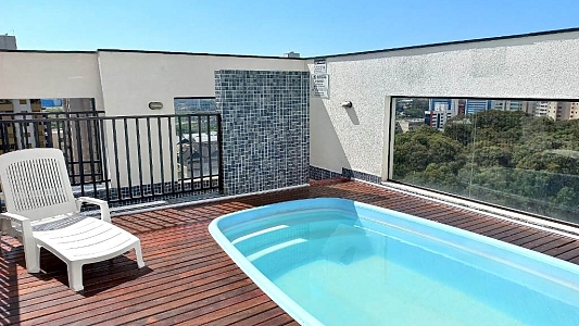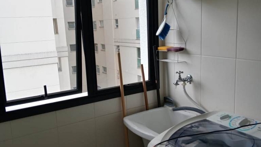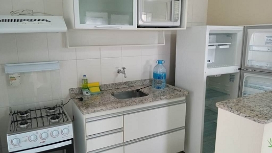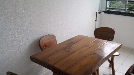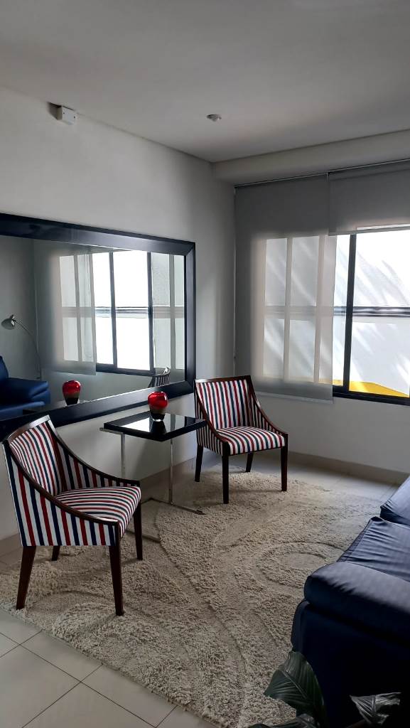 Apartamento MOBILIADO de 47m², com 1 dormitório com armário embutido, sala para 2 ambientes com sacada, cozinha americana planejada, área de serviço e garagem grande.
