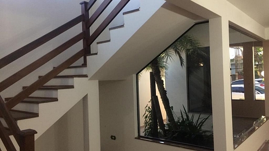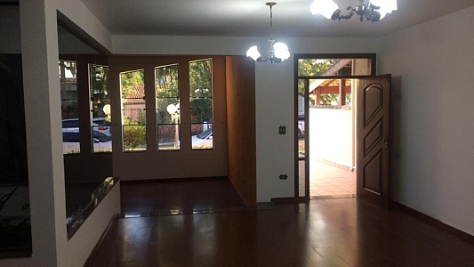 Pavimento térreo: Sala 2 ambientes, sala de TV, jardim de inverno, lavabo, cozinha americana ampla, área de serviço, despensa, churrasqueira, pequeno quintal e garagem para 2 carros.