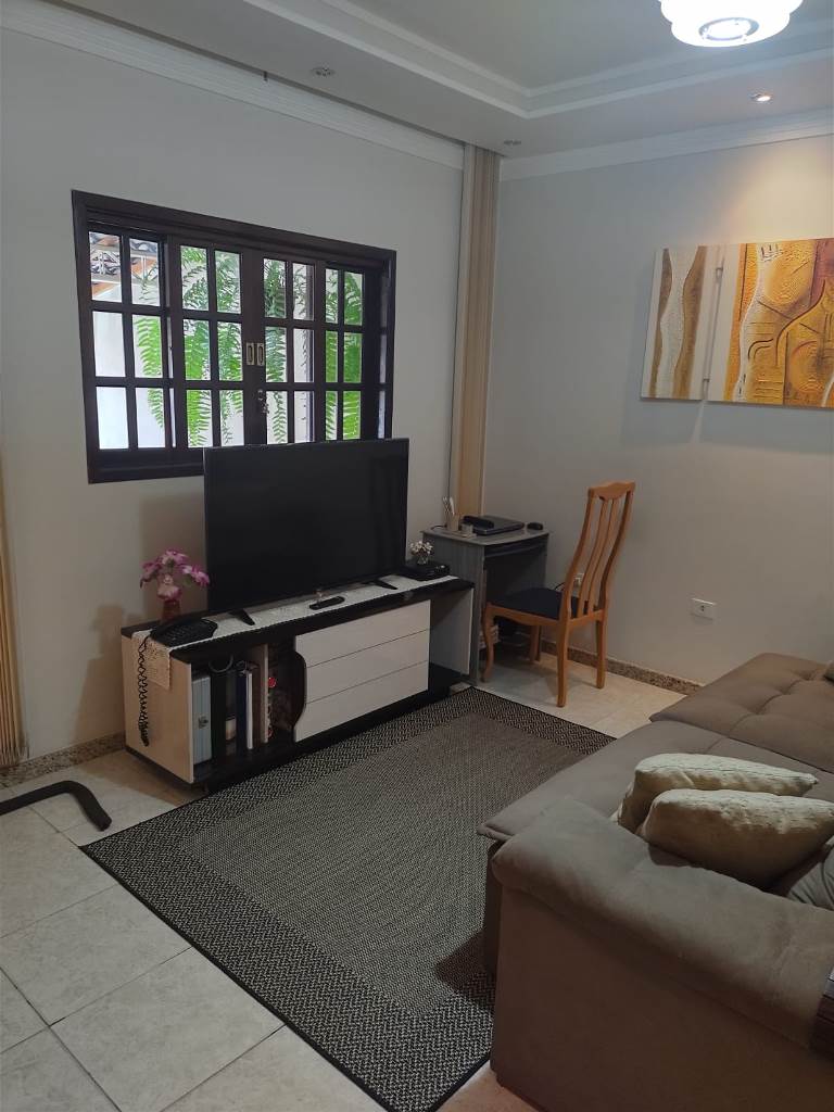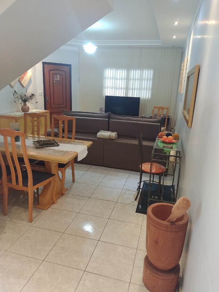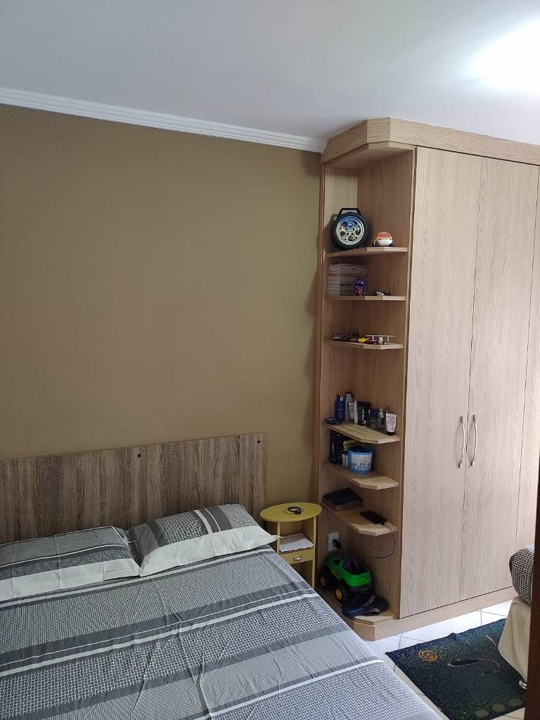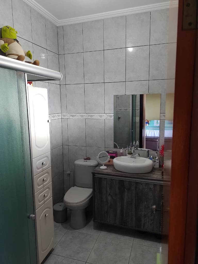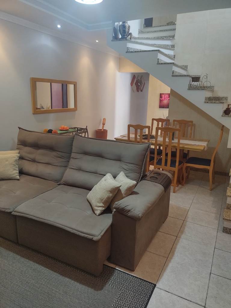 Sobrado num terreno de 152,81m², parea construída de 132,20m², com 4 dormitórios, sendo 1 suíte, 2 com armários embutidos, cozinha planejada, banheiro social, lavanderia, churrasqueira e garagem para 2 carros.