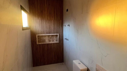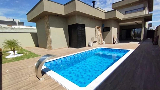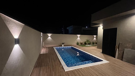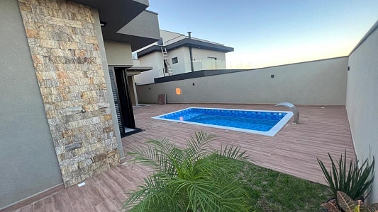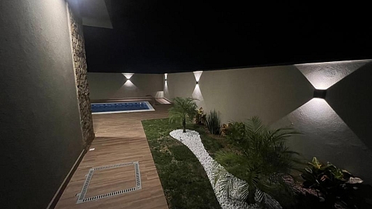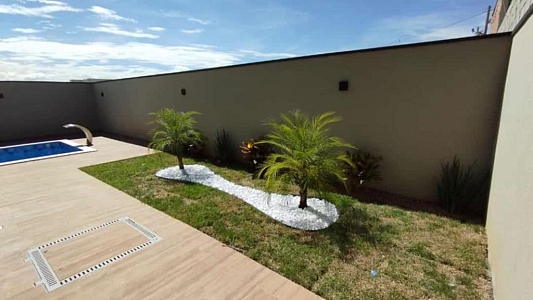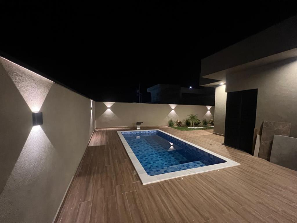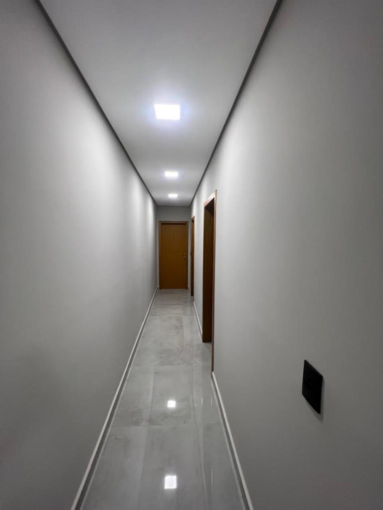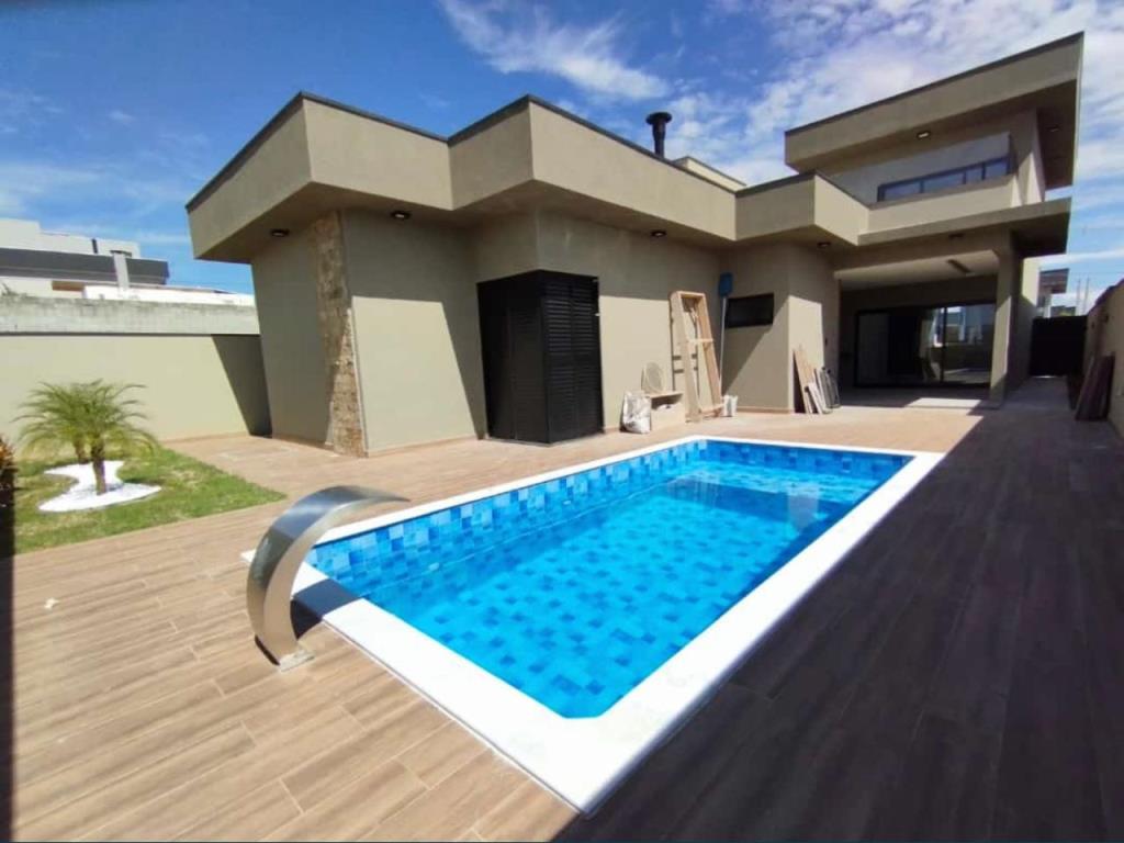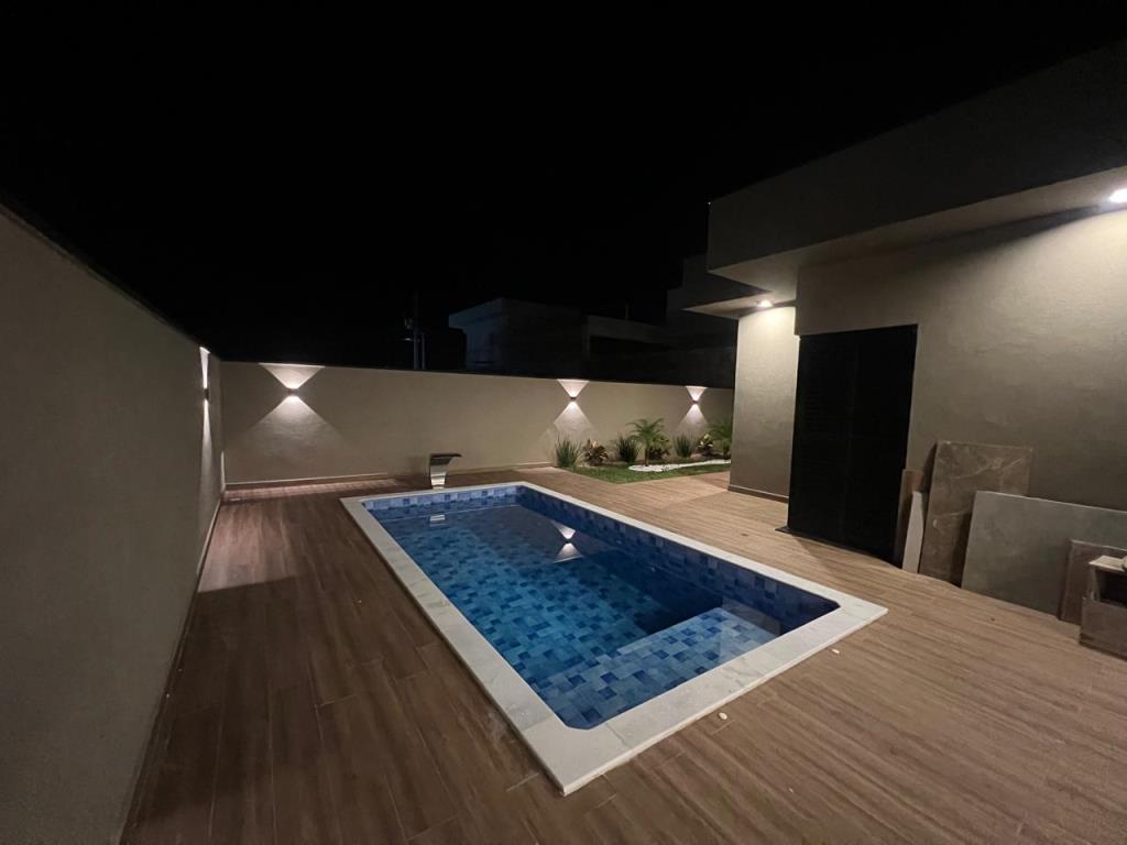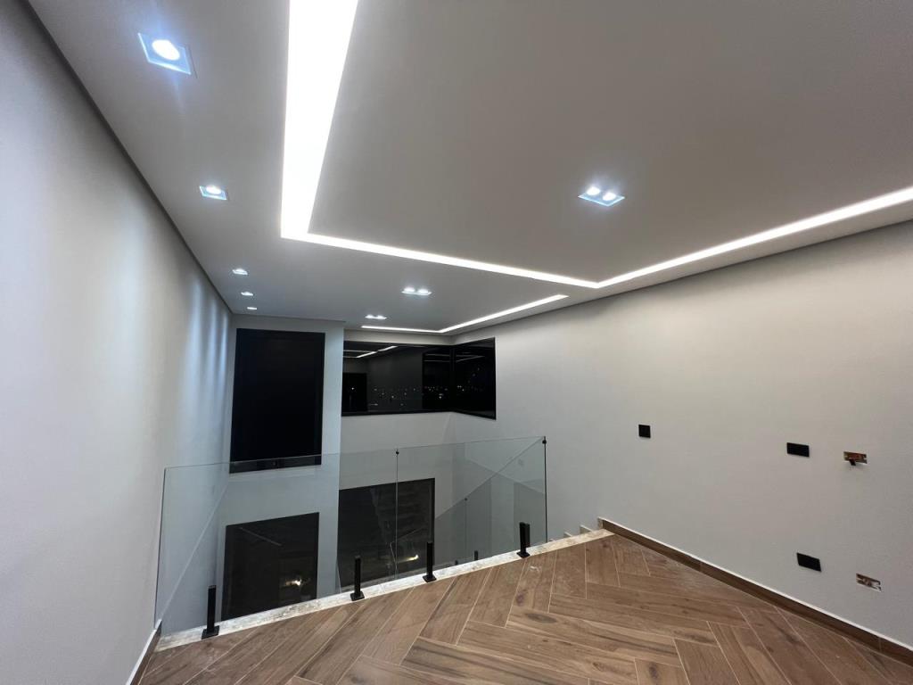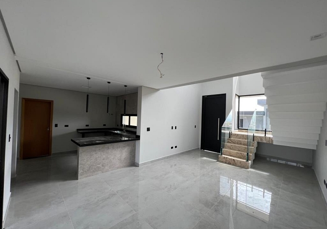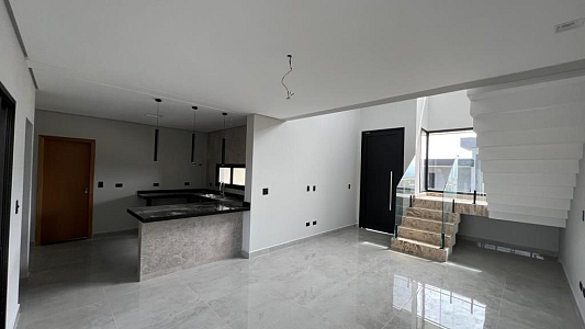 Com 3 quartos, sendo 1 suíte com closet, 1 banheiro social com acesso aos 2 quartos (demi suite), Mezanino com sacada e vista para Serra (nascer do sol), Cozinha conceito aberto, Pé direto da sala com 6m, Banheiro na área gourmet. Área gourmet completa, Piscina, Lavanderia, água quente e fria, Boiler instalado, infraestrutura para ar condicionado, Pintura com granfino, Garagem para 4 carros.