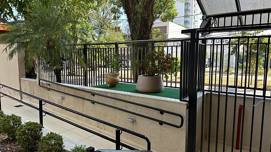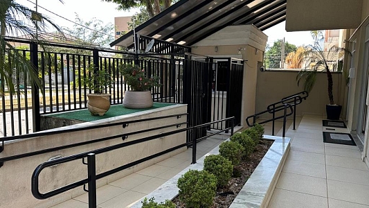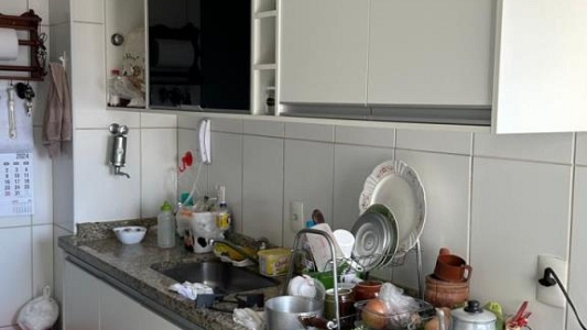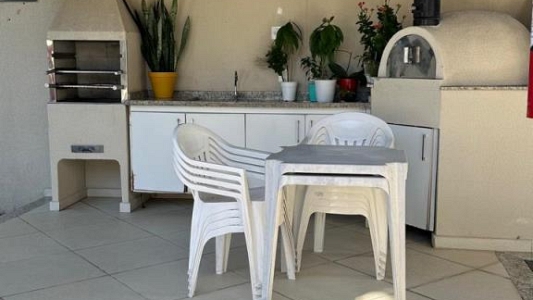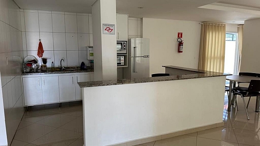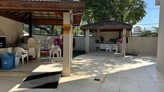 Condomínio com churrasqueira e forno, salão de festa e portaria 24 horas.