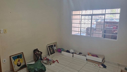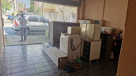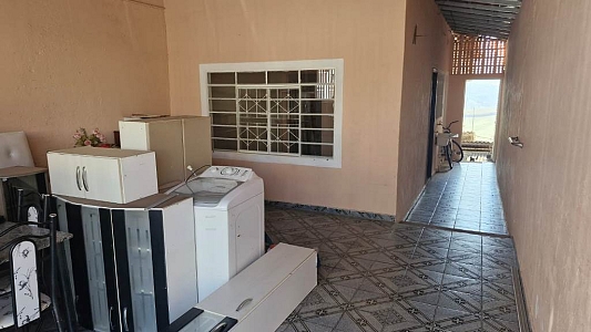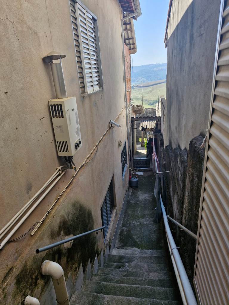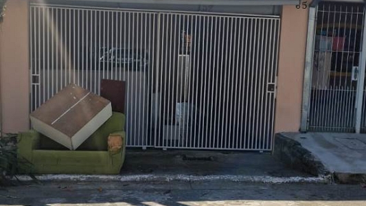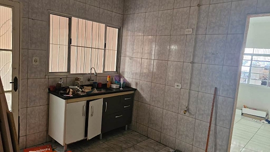 Sobrado num terreno de 150m², área construída de 150m², com 2 dormitórios, sala para 2 ambientes, cozinha, banheiro social e garagem para carros.