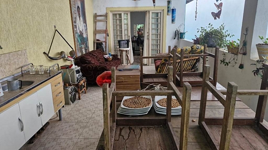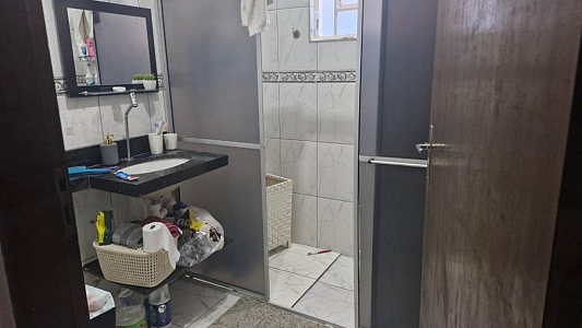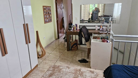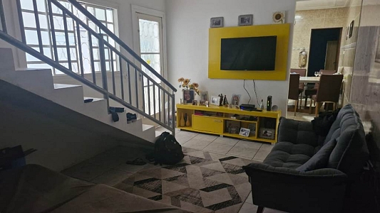 Sobrado num terreno de 175m², área construída de 120m², com 3 dormitórios, sendo a suite parte de cima e 2 dormitórios embaixo, cozinha, banheiro social, sala, varanda superior com churrasqueira, garagem pra 2 carros.