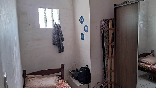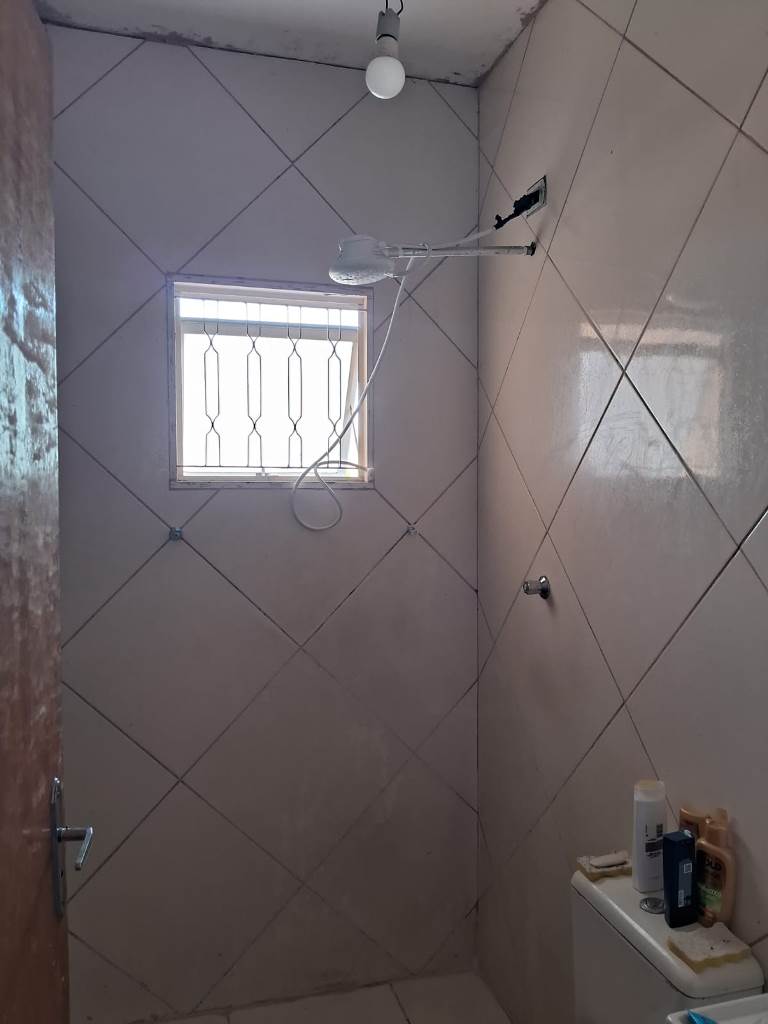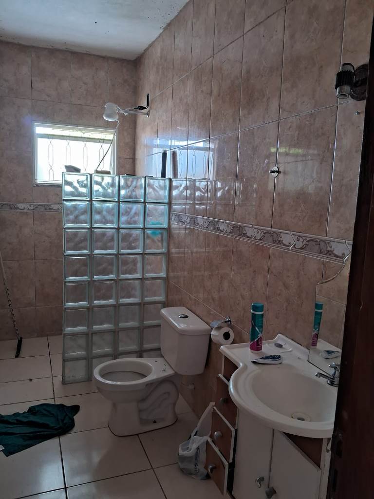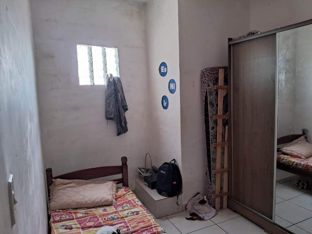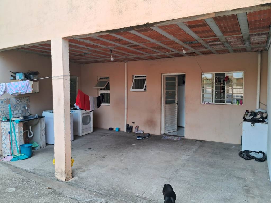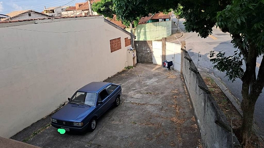 Garagem coberta para 1 carro, além de espaço para até 5 veículos no quintal frontal.