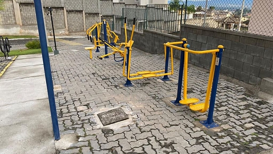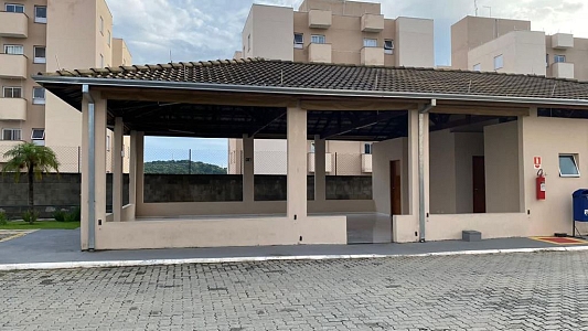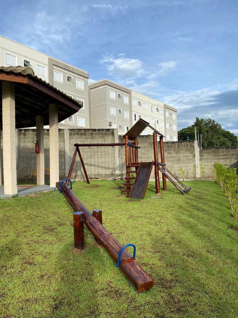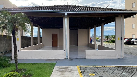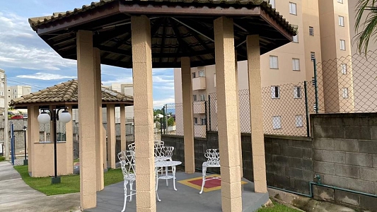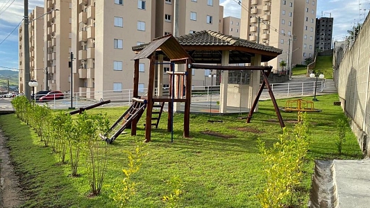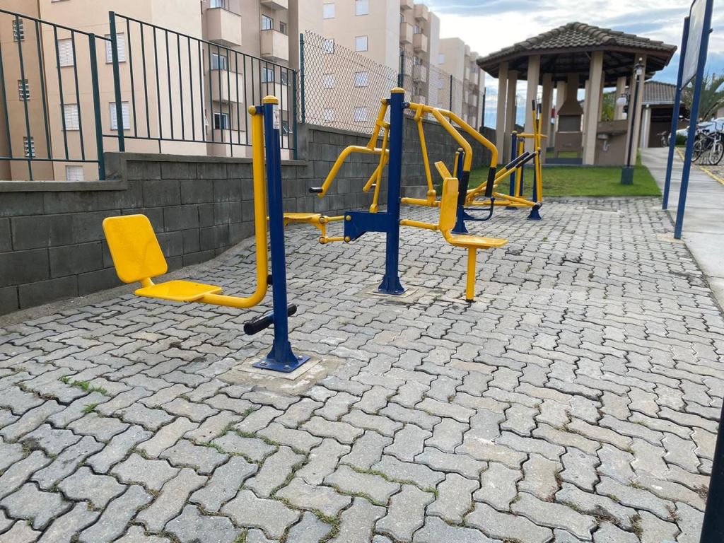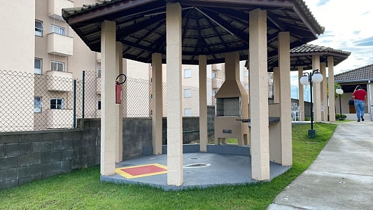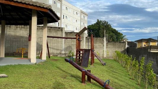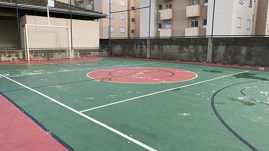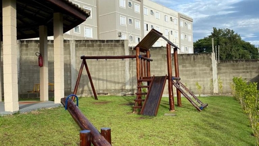 Condomínio com quadra poliesportiva, churrasqueira, salão de festas e playground e com elevador.
