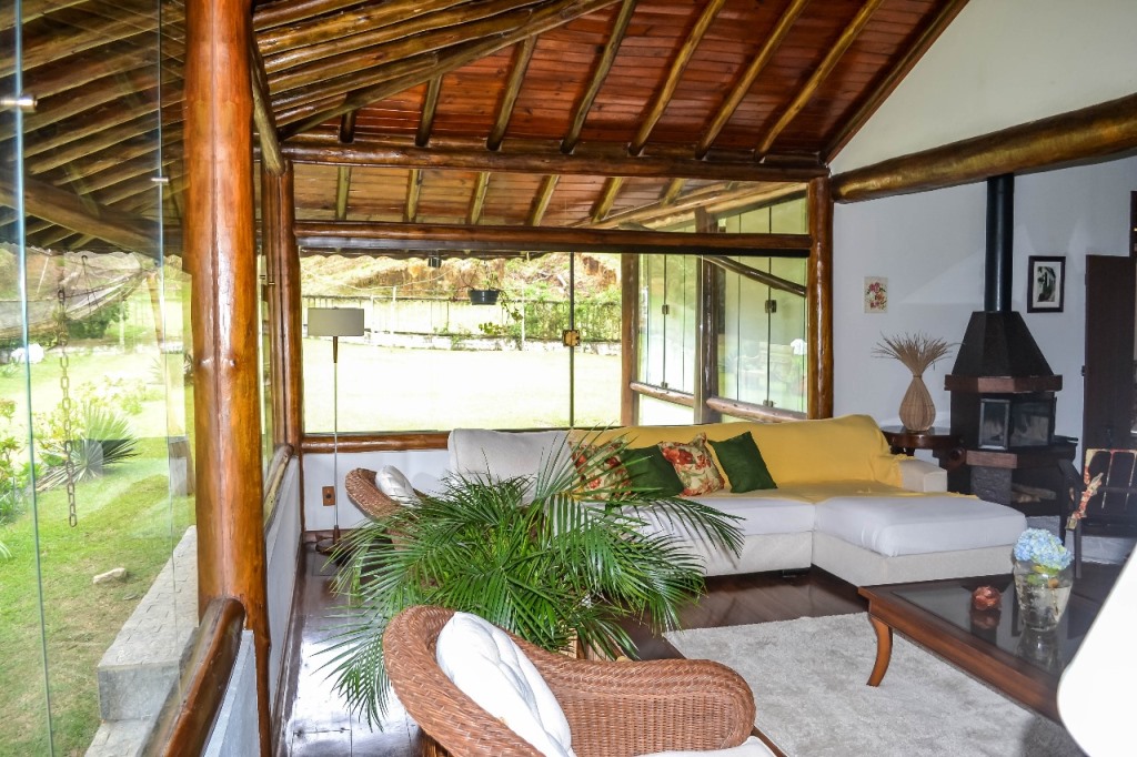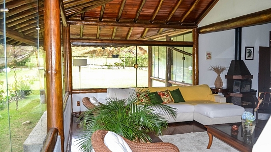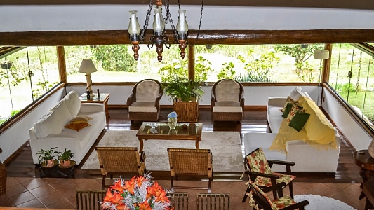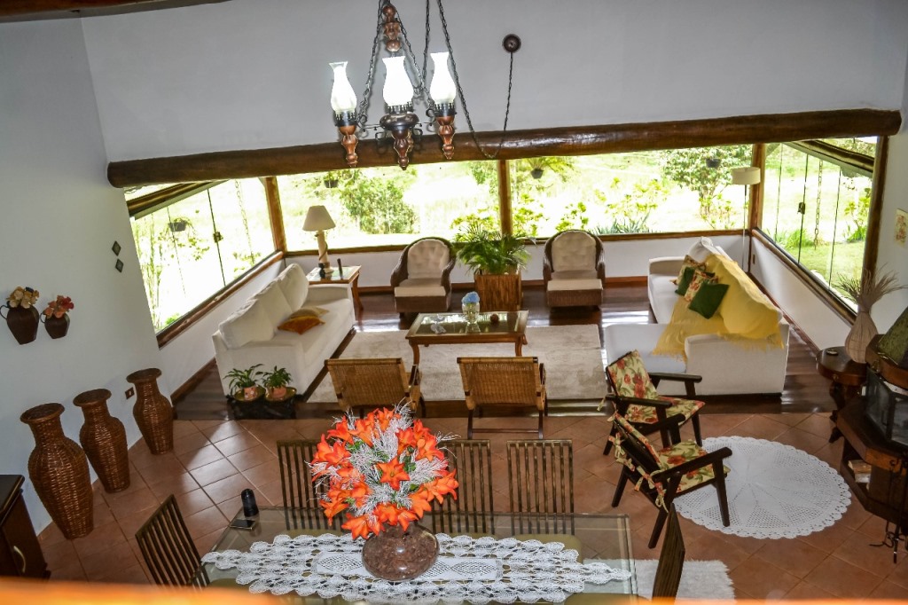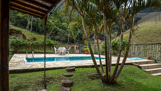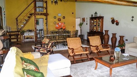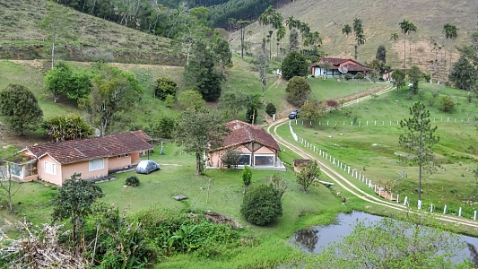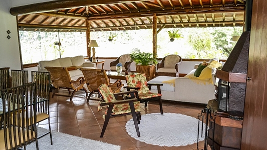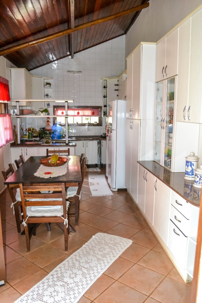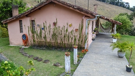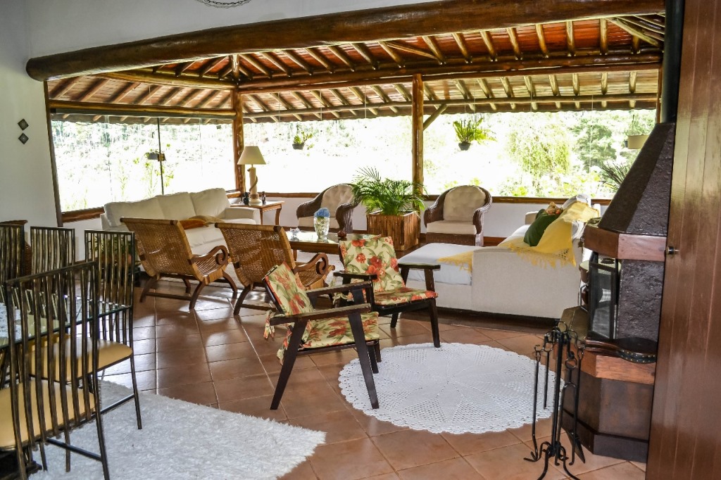 Galpão de festas com churrasqueira e forno a lenha com instalações para funcionários e garagem coberta; Estrutura para criação de animais: porcos, galinhas, cabras, cavalos e vacas; Fonte de água mineral e lagos com peixes.