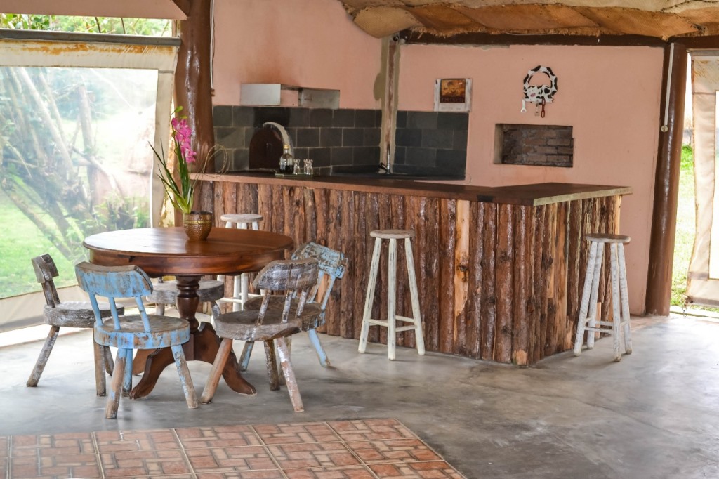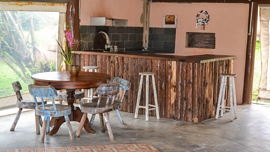 CASA HÓSPEDE 1: com 2 dormitórios, sala, cozinha caipira (fogão e forno a lenha) e banheiro;