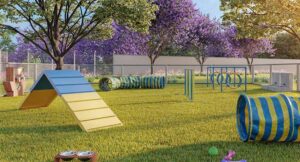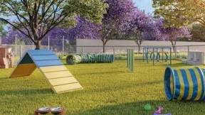 Condomínio com campo de futebol, churrasqueira, espaço gourmet, playground, salão de festas e portaria 24 horas.