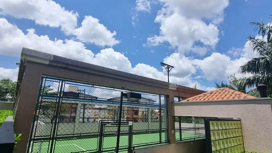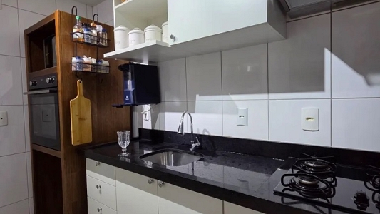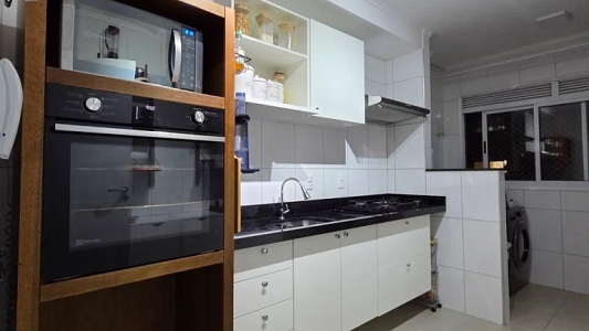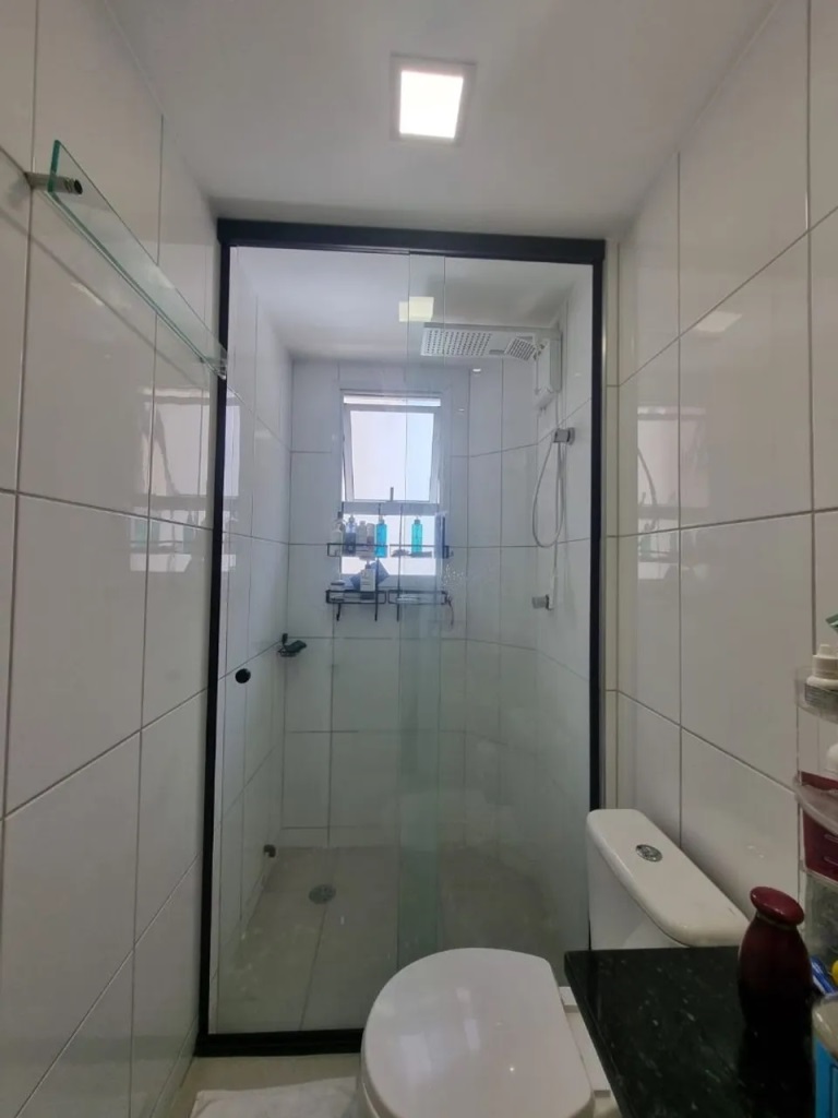 Com bela vista lateral, piso em porcelanato de primeira linha, persianas de rolo, banheiros com box até o teto e pia granito preto São Gabriel e fechadura digital.