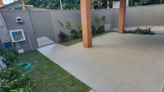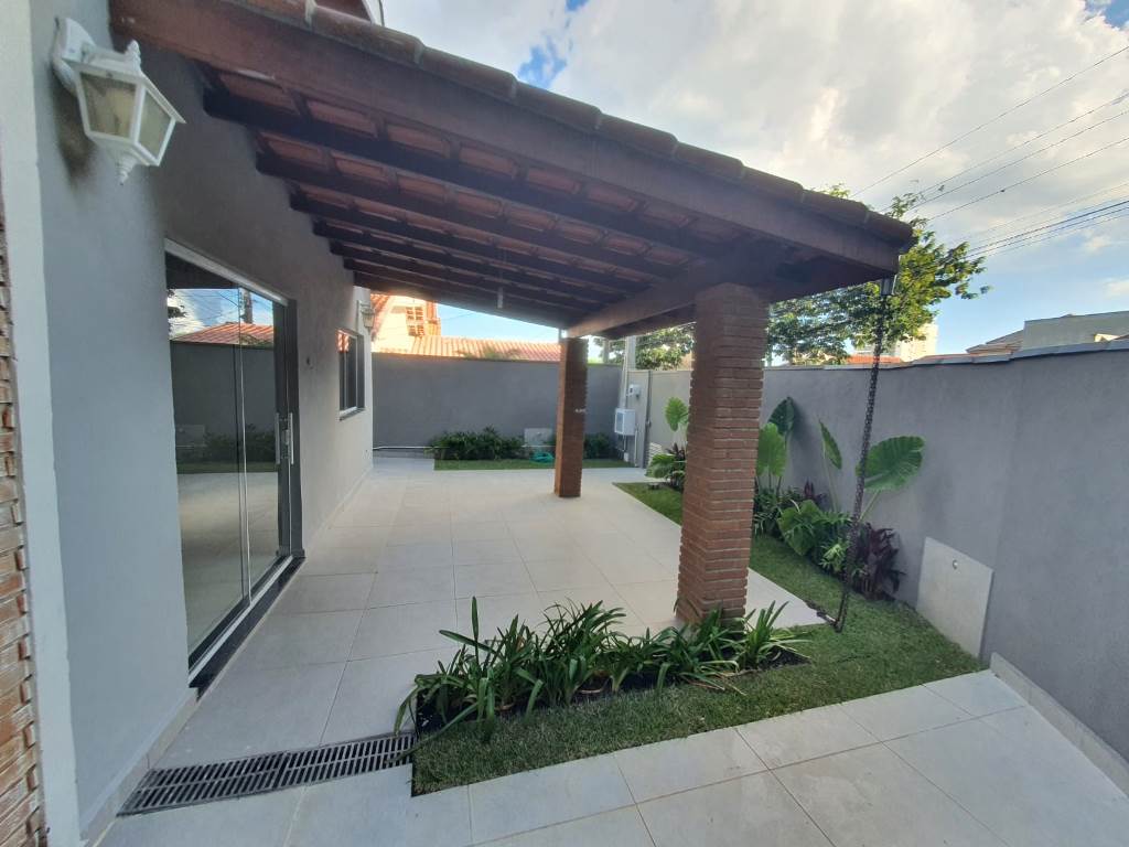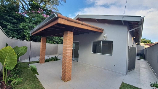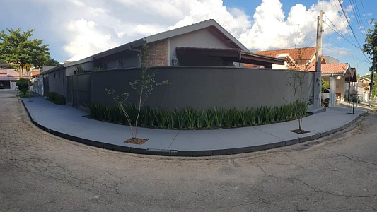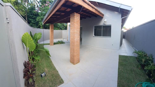 Casa térrea num terreno de 250m², área construída de 225m², com 3 dormitórios, sendo 2 suítes, sala para 2 ambientes, 3 banheiros, área de serviço e garagem para 2 carros.