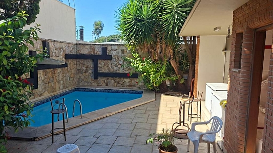 Imóvel comercial ou residencial num terreno de 450m², área construída de 339m², com 3 suítes, sala de estar para 2 ambientes, sala de jantar, cozinha planejada, dependências de empregada, lavabo, 2 escritórios, área de serviço, piscina e garagem para 3 ou 4 carros.