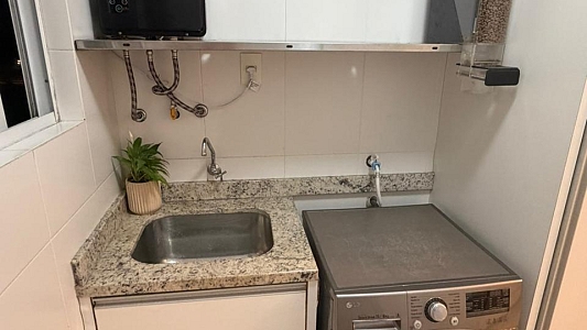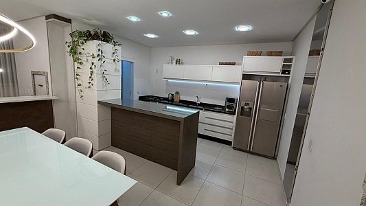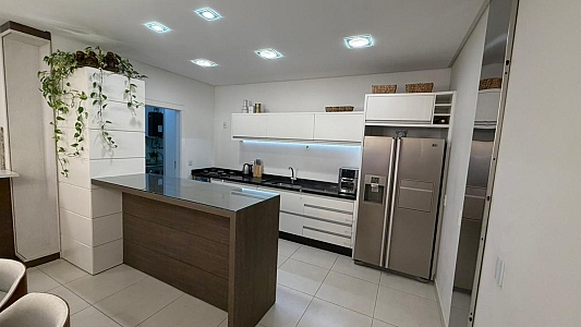Gastronomia: Cozinha completa com eletrodomésticos de ponta (geladeira, air fryer, fogão a gás, forno elétrico, micro-ondas e lava-louças).