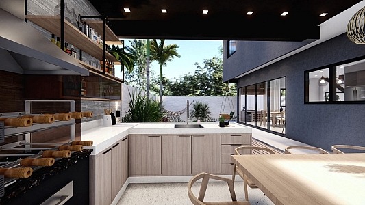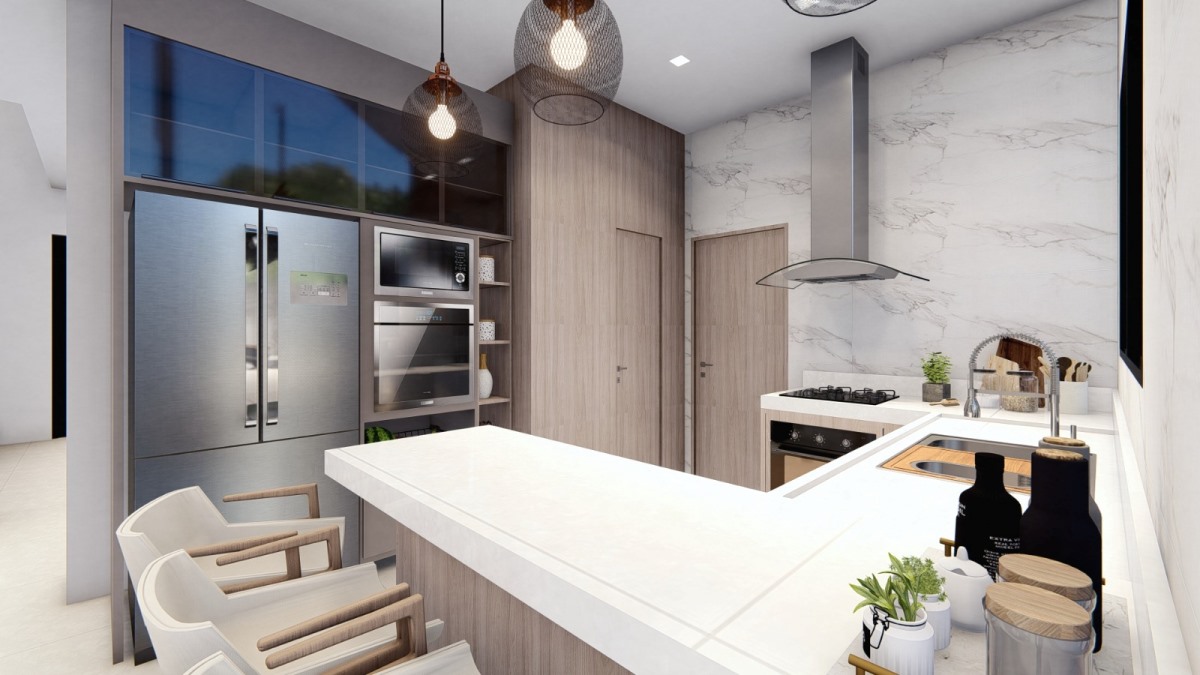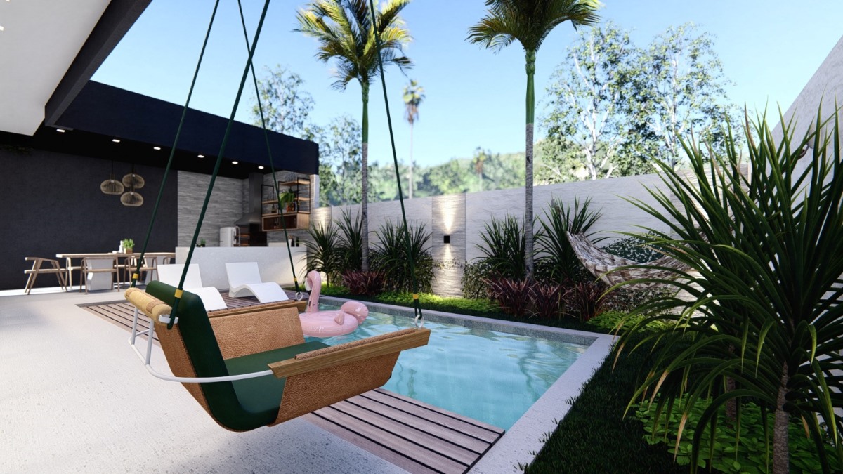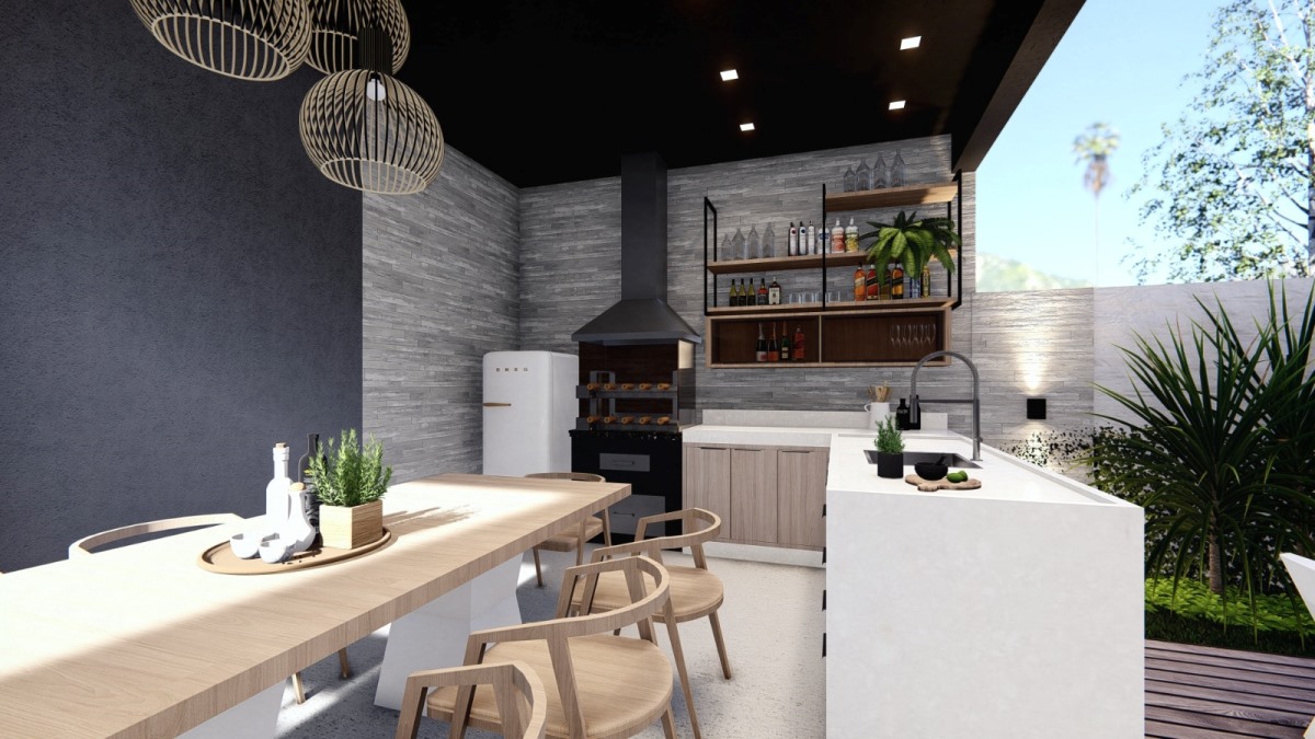 A área gourmet é um verdadeiro convite ao lazer, totalmente integrada à piscina com ilha, equipada com churrasqueira e espaço perfeito para receber amigos e familiares.