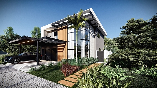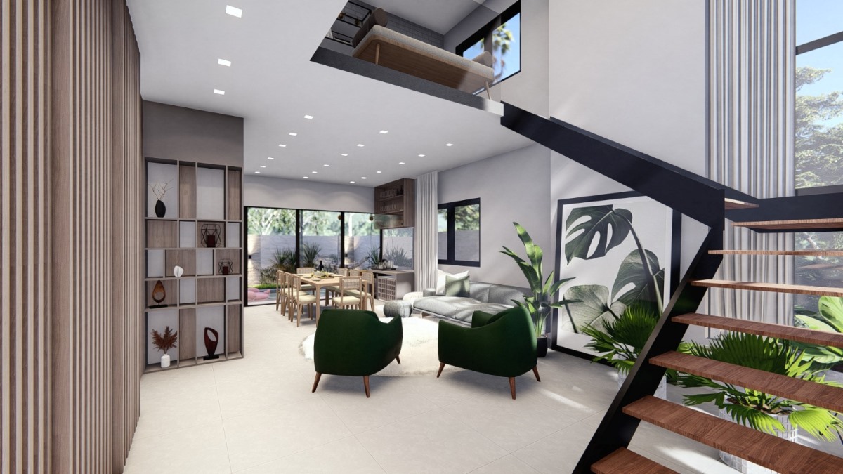 Com arquitetura moderna e planta funcional, o imóvel se destaca pelo alto padrão de acabamento, incluindo metais de primeira linha, persianas automatizadas, preparação para ar-condicionado, paisagismo completo e um amplo hobby box.
